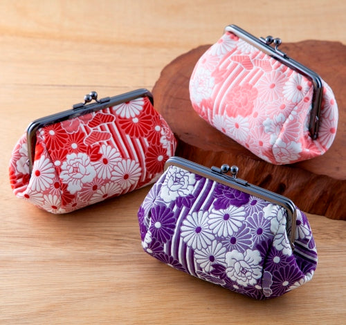 のレン 俵型 がま口ポーチ ふくれ織レトロフラワー