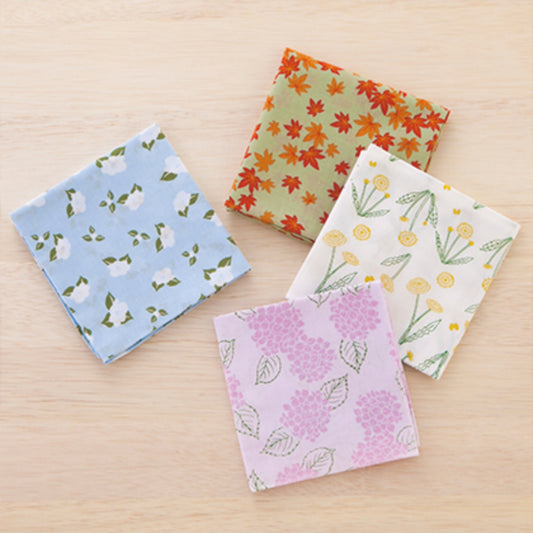 Noren Hand-printed Tenugui/Tapestry Rod Set of 4 Seasonal Patterns