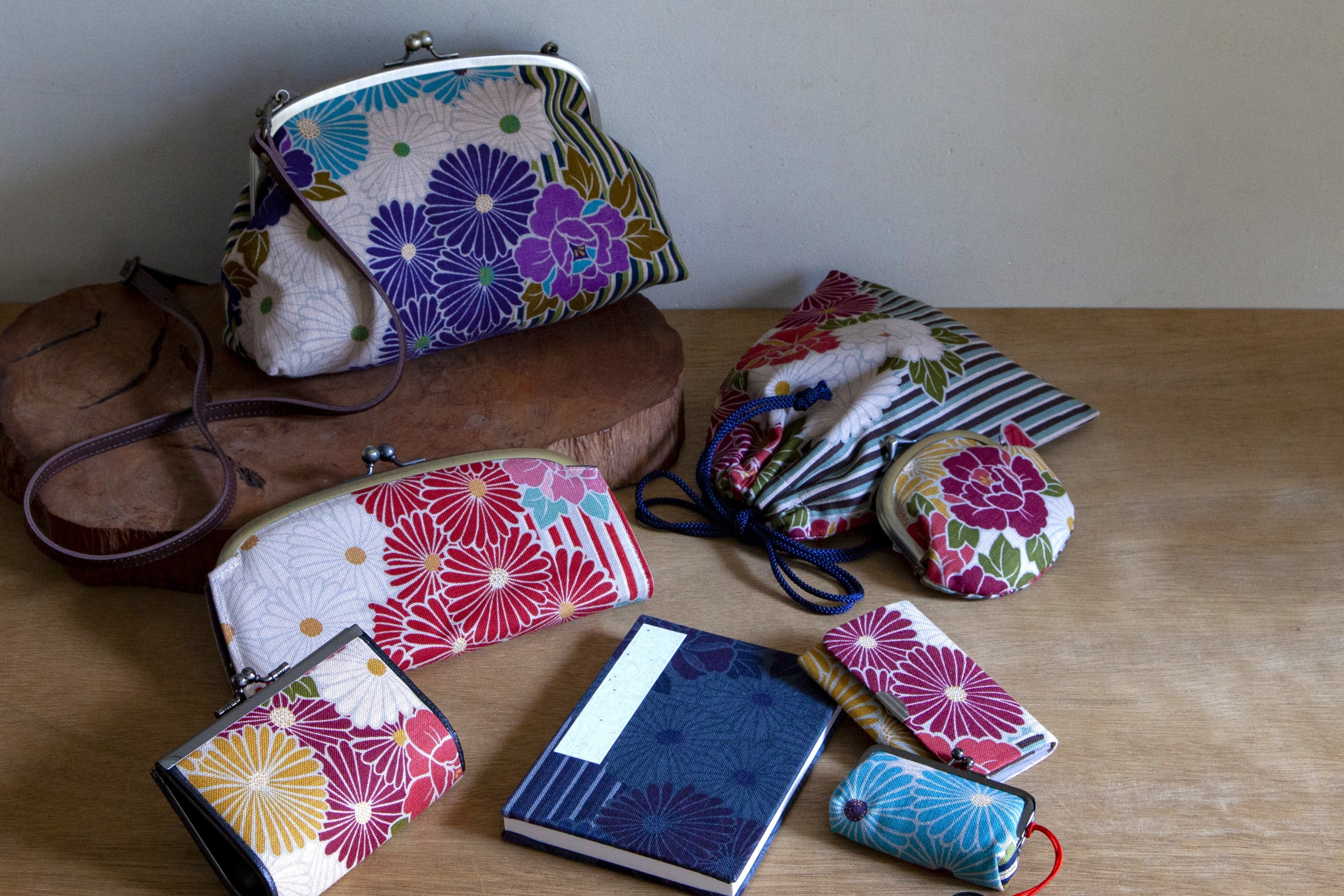 画像は一例となりますが、大きな和柄の生地を切り取って制作されているため、すべての商品の柄は異なります。実際にお手に取ってお好みの柄をお選びいただくことができかねるため、ご希望に沿えない点をご了承ください。なお、柄のお好みによる商品の返品交換は対応いたしかねます。一期一会の出会いをお楽しみください。