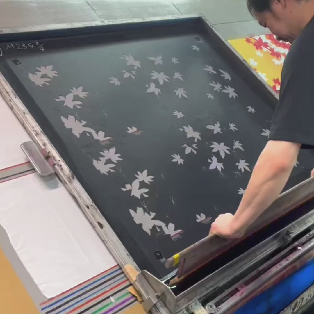 京友禅に代表される伝統的な染色方法である手捺染(てなっせん)という伝統的な型染めの手法を用い、鮮やかな色で複雑なデザインを表現しております。
