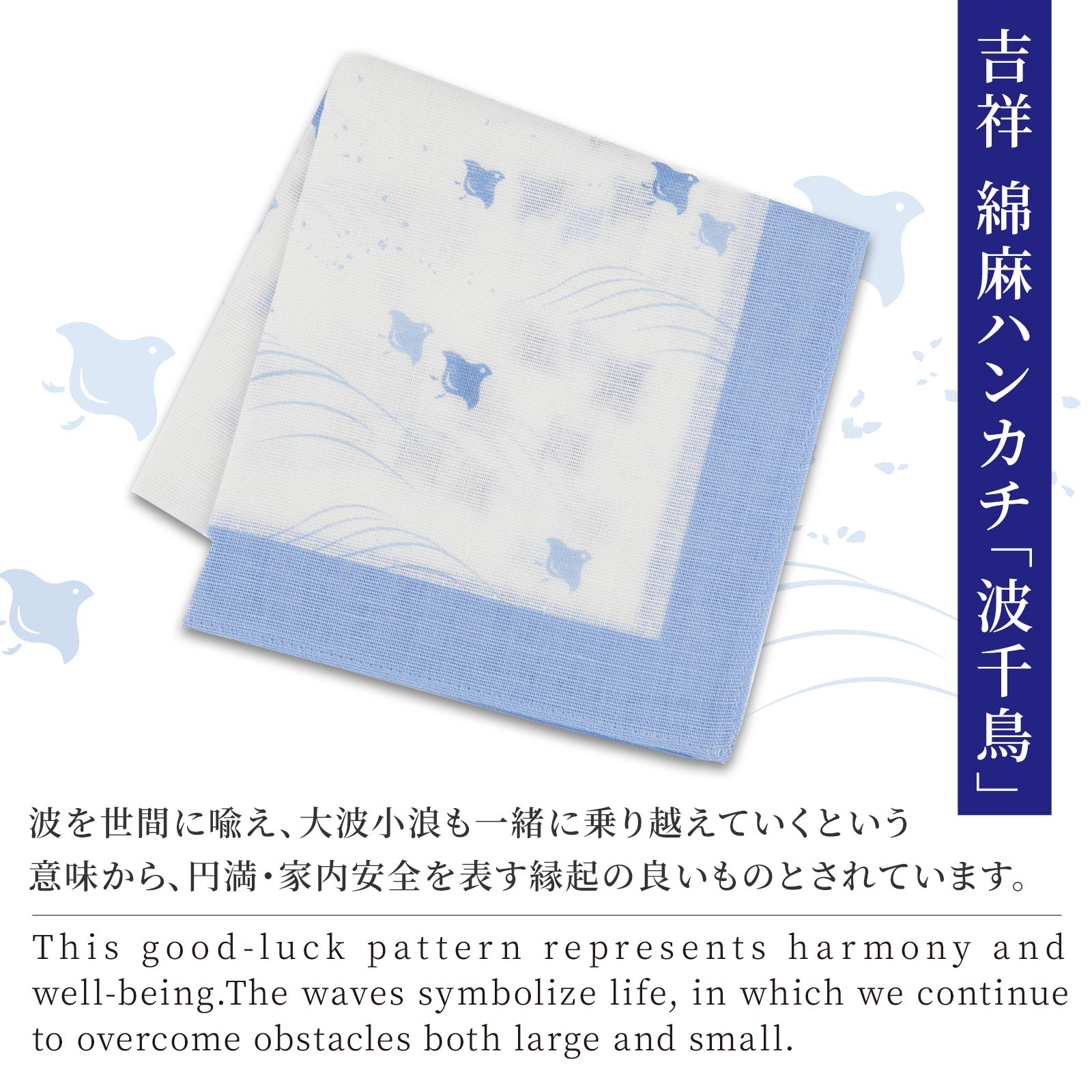 吉祥文様とは、繁栄や長寿、幸福などの願いを込めた文様のこと。桜や梅などの花々、動物や自然の姿、幾何学的な模様まで、古来より人々は祈りや願いを意匠に込めてきました。このハンカチは、そんな伝統を受け継ぎながらも、現代の暮らしに取り入れやすいデザインに仕上げています。