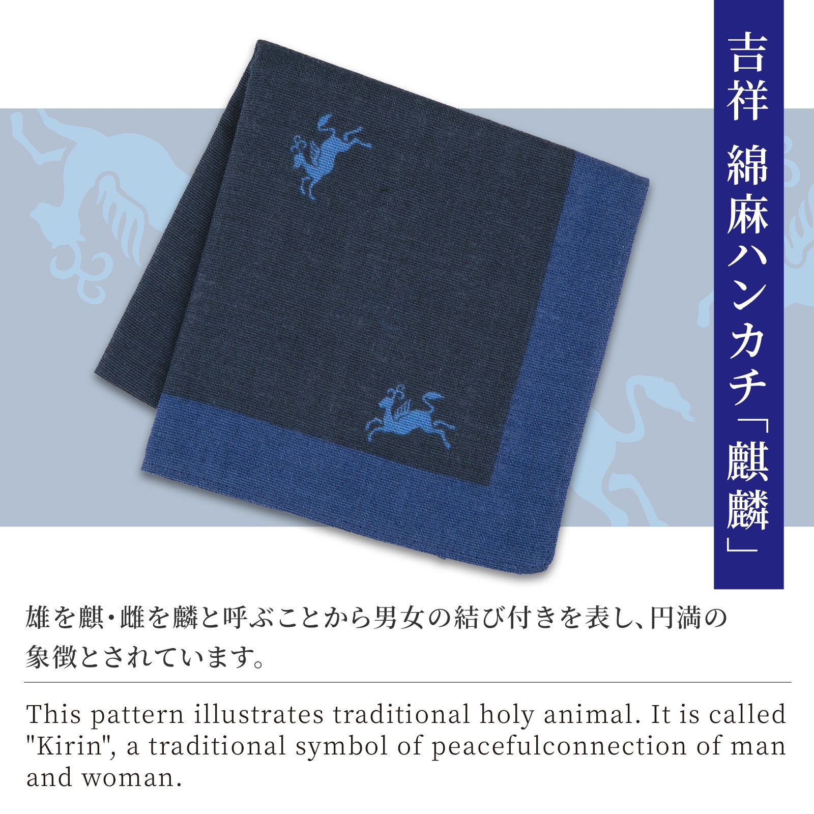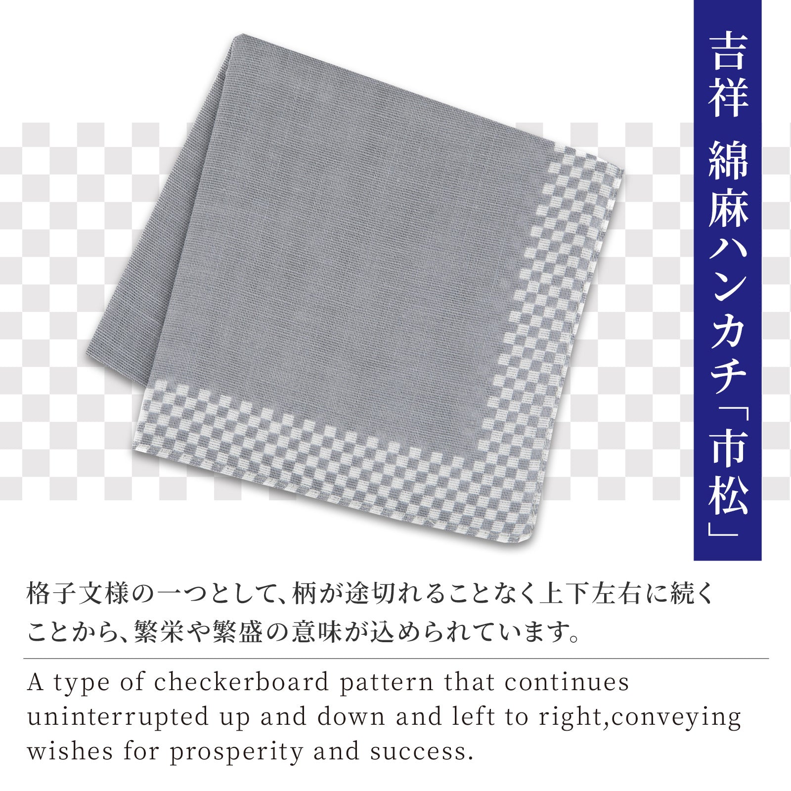 のレン 吉祥 綿麻ハンカチ / 綿80% 麻20% 47×47cm メンズハンカチ