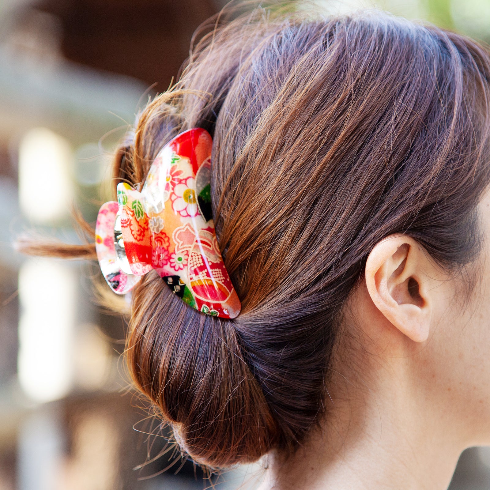 華やかながらも品のある和柄デザインは、合わせるスタイルを選びません。カジュアルなデイリーユースから、オフィスでの知的な装い、さらに浴衣や着物などの和装、結婚式やパーティーといった華やかなオケージョンまで対応。シンプルなヘアアレンジにプラスするだけで、さりげなくクラス感を高め、洗練された大人の女性を演出します。