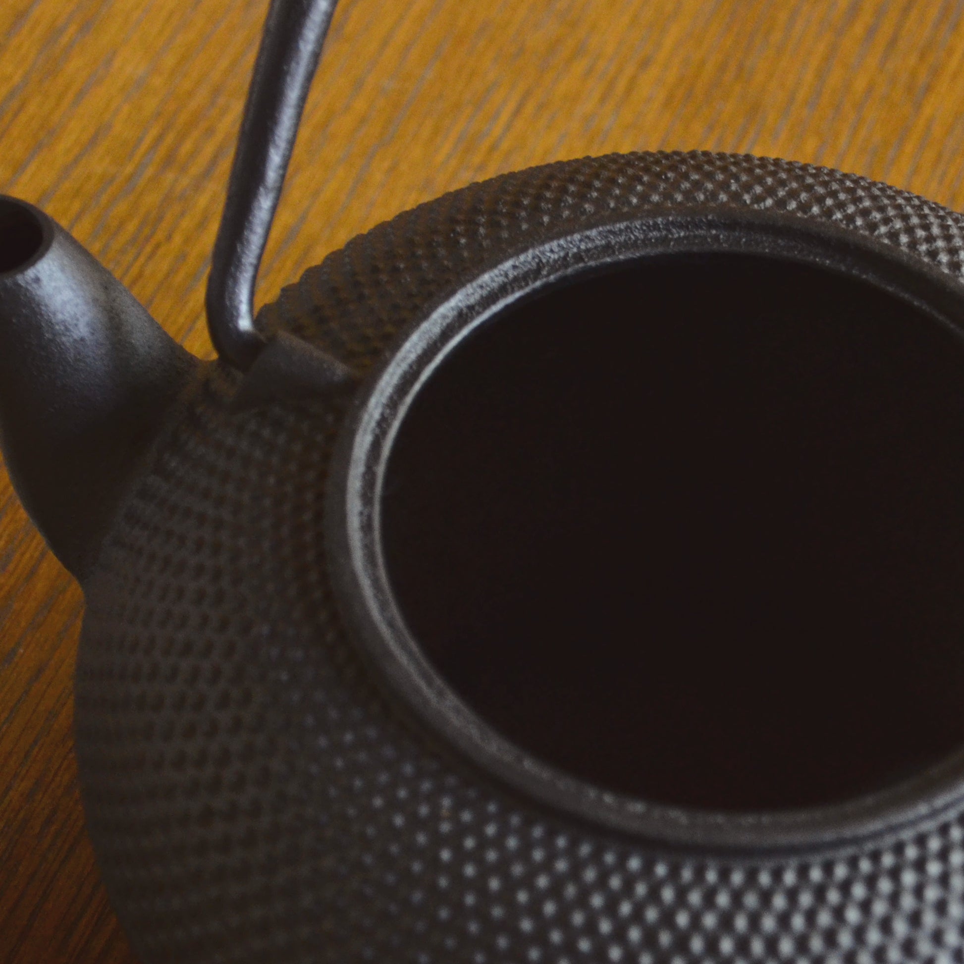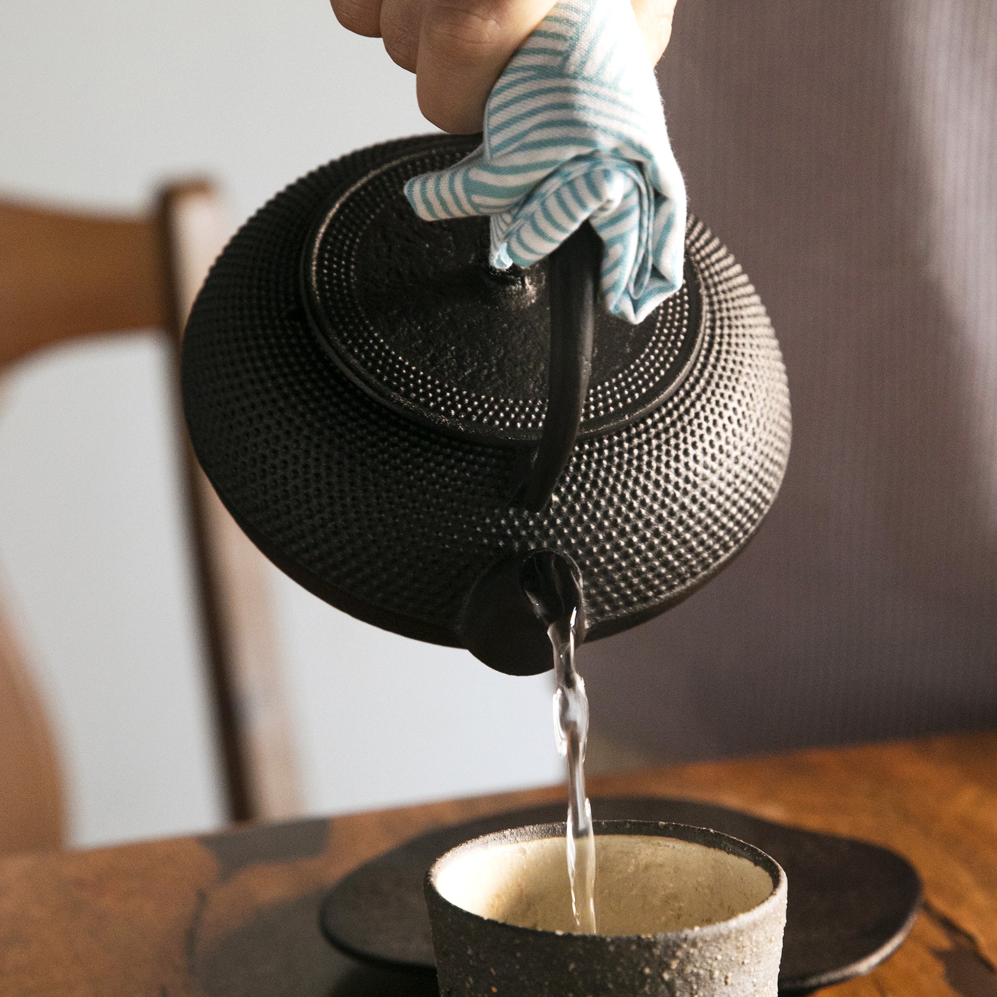 使うほどに内側に湯垢が育ち、鉄瓶は艶やかに成熟していきます。使い終えたらお湯を残さず、蓋を開けて余熱で乾かすだけ。錆が気になるときは、茶葉を煮出して整えれば十分。洗剤も磨きもいらない、自然と寄り添うお手入れです。時を重ねるほどに自分だけの色艶を帯びていく・・・。それが南部鉄瓶の最大の魅力です。