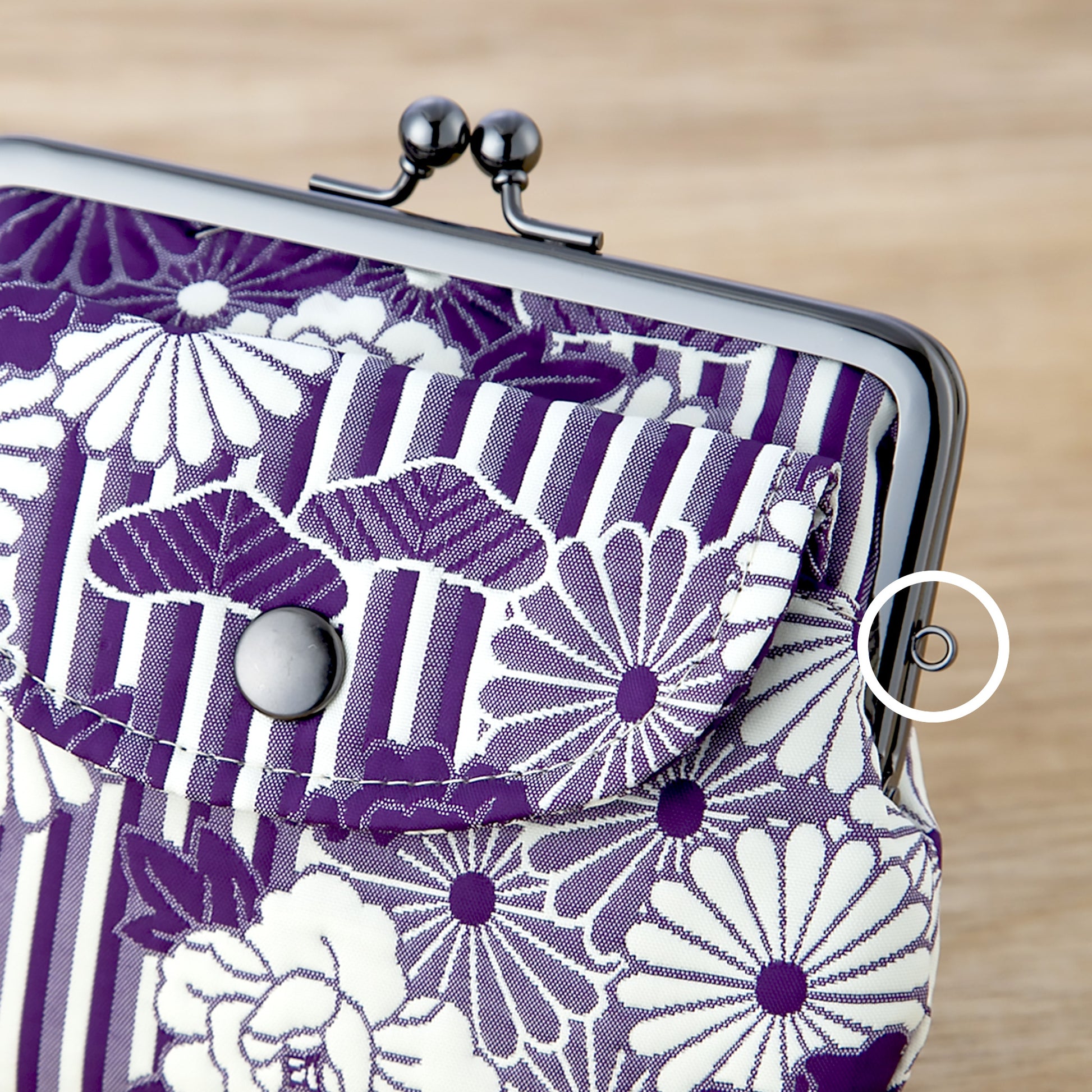 内側には、綸子という織物生地を使用し、表地の柄と相性のよい落ち着いた色合いの裏地を使用。