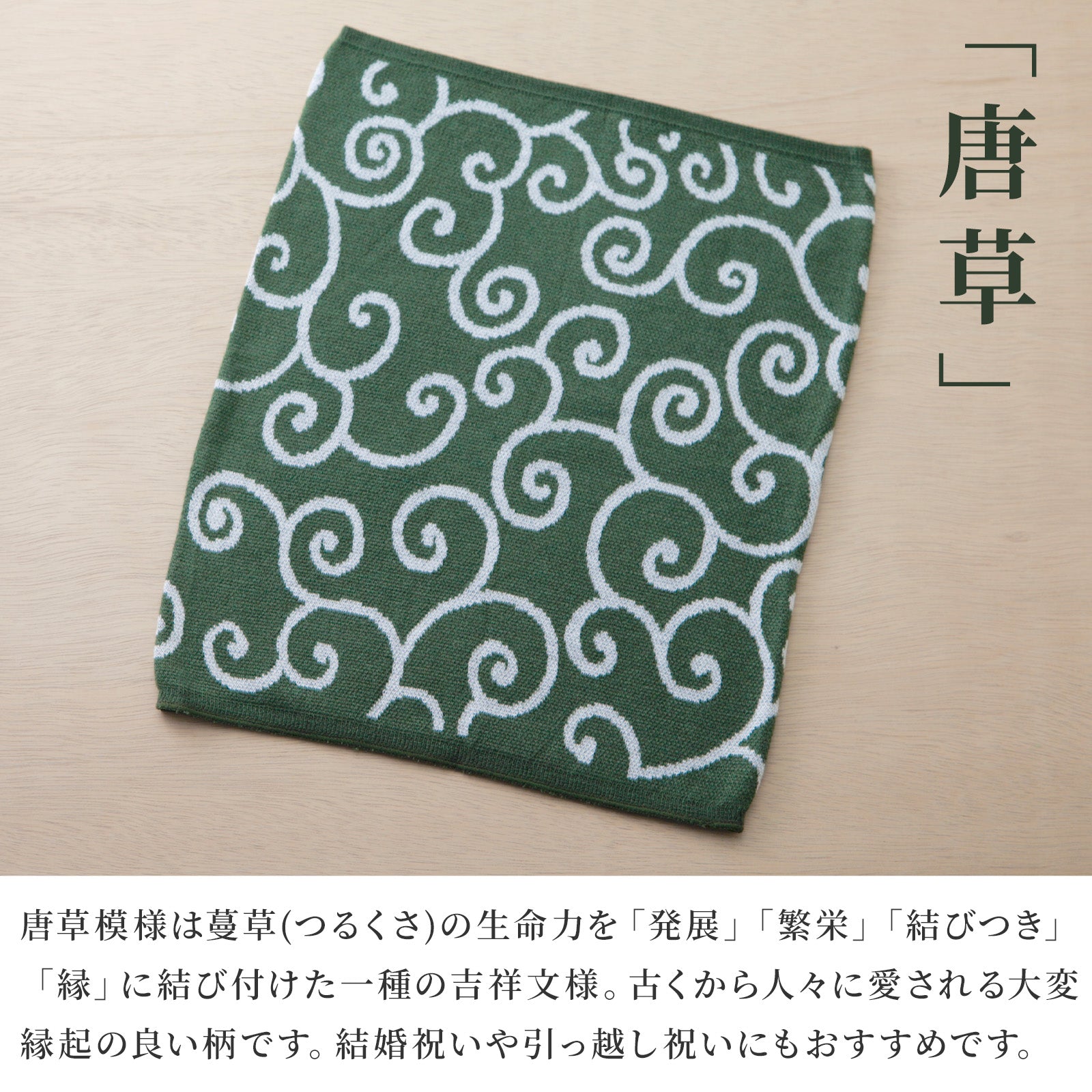 くるくると伸びる蔓がどこまでも続く唐草模様は、「繁栄」「長寿」「ご縁」を象徴する伝統柄。家族や人との絆が絶えず続くように——そんな願いを込めて、古くから祝いの品や贈り物に使われてきました。絶えることのない生命力を感じさせる模様は、日々の暮らしに力強さと安心を与えてくれます。