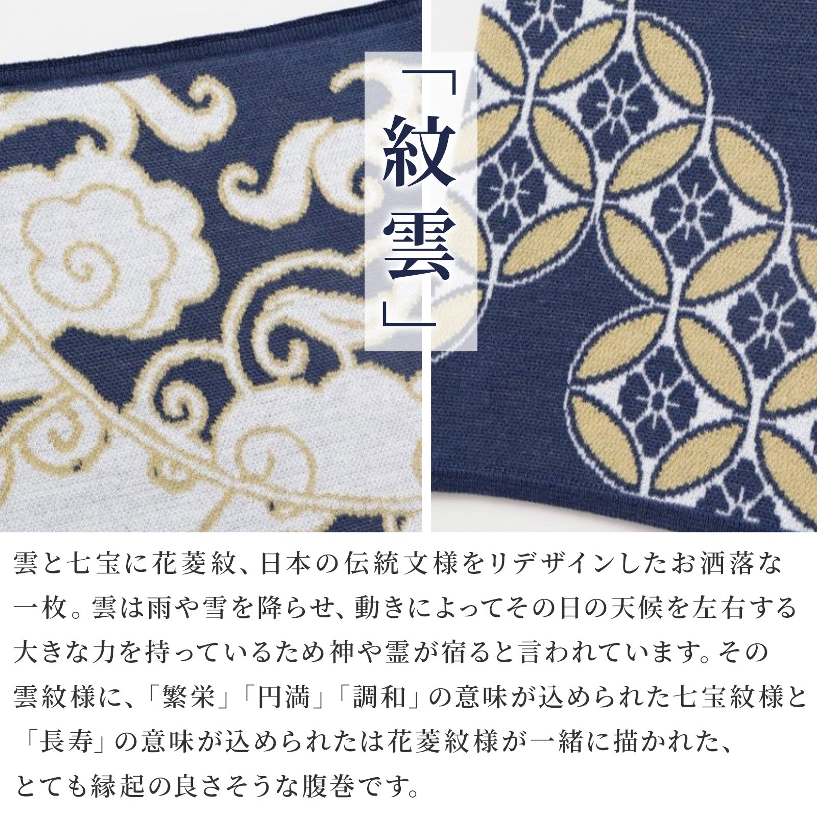 服の中に隠れてしまいがちな腹巻を、あえて「ファッションアイテム」として楽しめるのがカヤの魅力。伝統的な和のモチーフを、遊び心あるデザインで表現しています。ちらりと見えても可愛く、贈り物にもぴったりな一枚です。輪っか状の形はネックウォーマーとしても使え、使い方次第で一年中活躍します。
