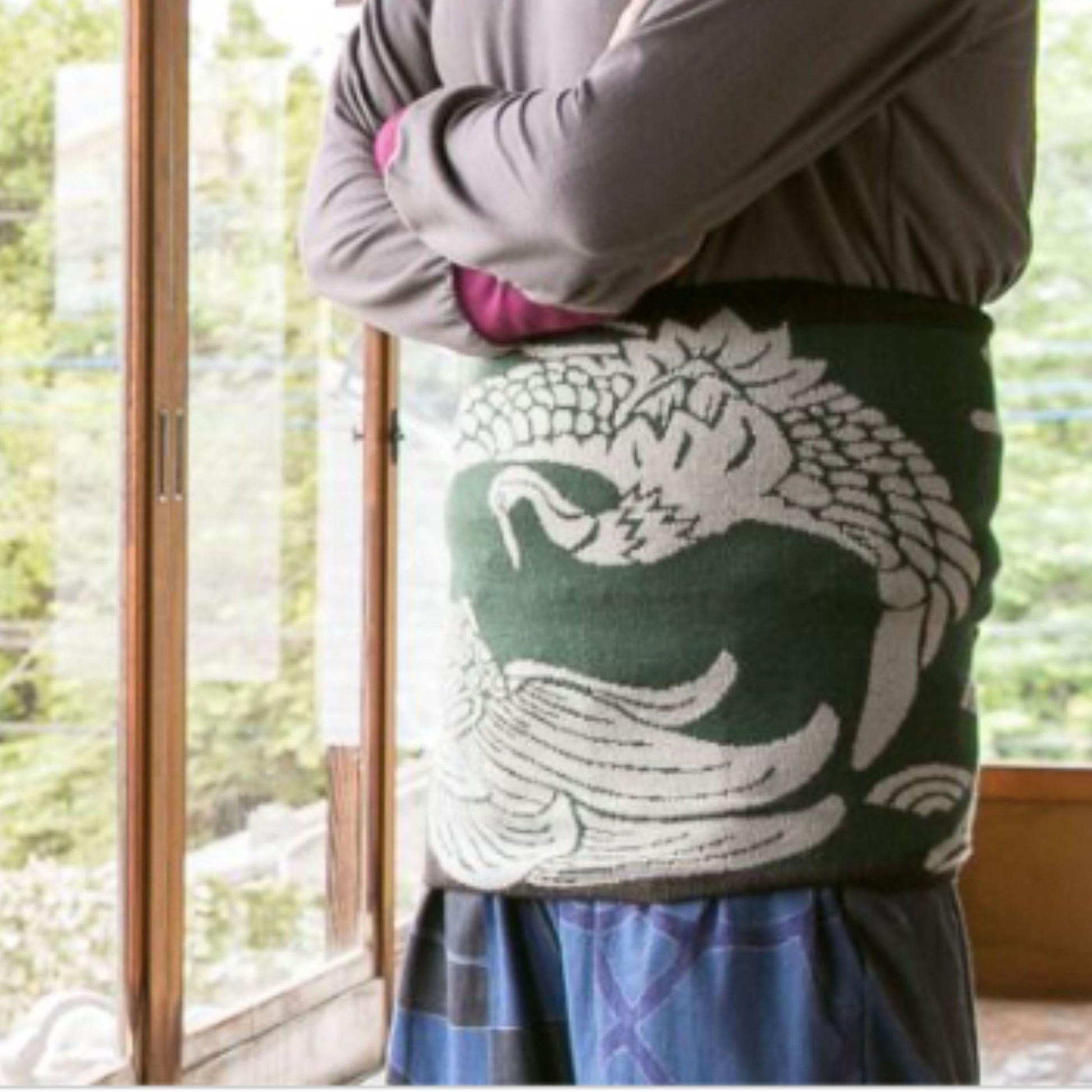 愛知県の工房で、一枚一枚、熟練の職人が丁寧に編み上げています。伝統の柄をモチーフに、しっかりとした厚みと柔らかな肌ざわりを両立。軽やかなのに暖かく、心までほっとする日本のぬくもりを感じさせます。