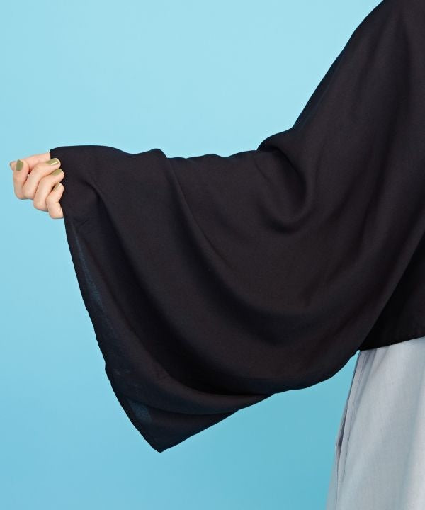 UVカット加工のついた羽織は、短丈で着物のような大きめな袖が特徴的
