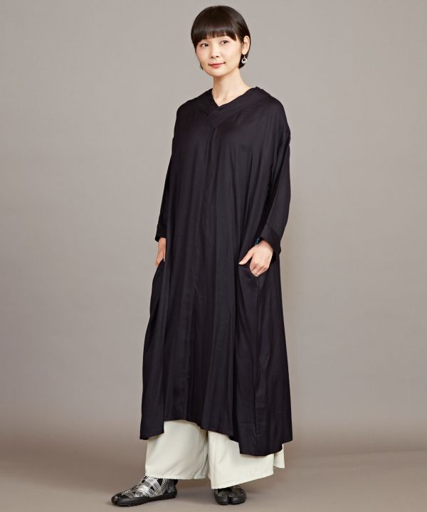 まるで着物の重ねのような衿は一枚着るだけで和の装いに