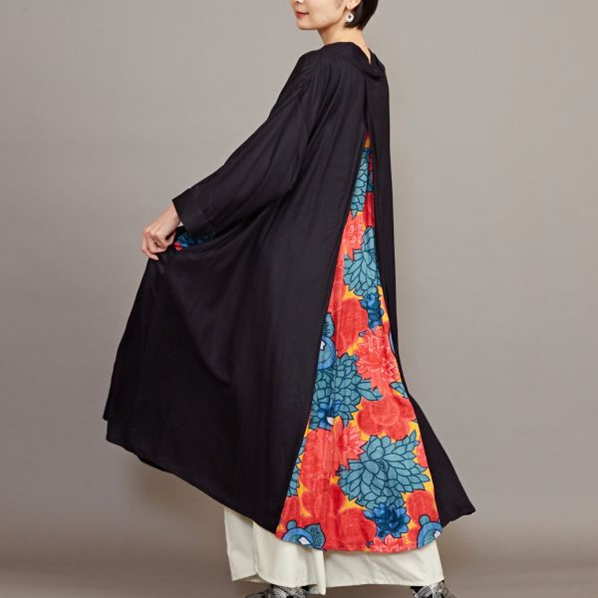 歩いたときにちらりと見える美しい花柄が特徴の「八掛(はっかけ)」のワンピース