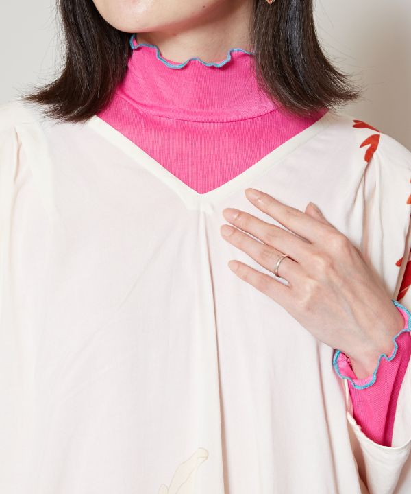 薄手の生地感なので中に重ね着をしたり、ワイドパンツやロングスカートを合わせたレイヤードスタイルもおすすめです