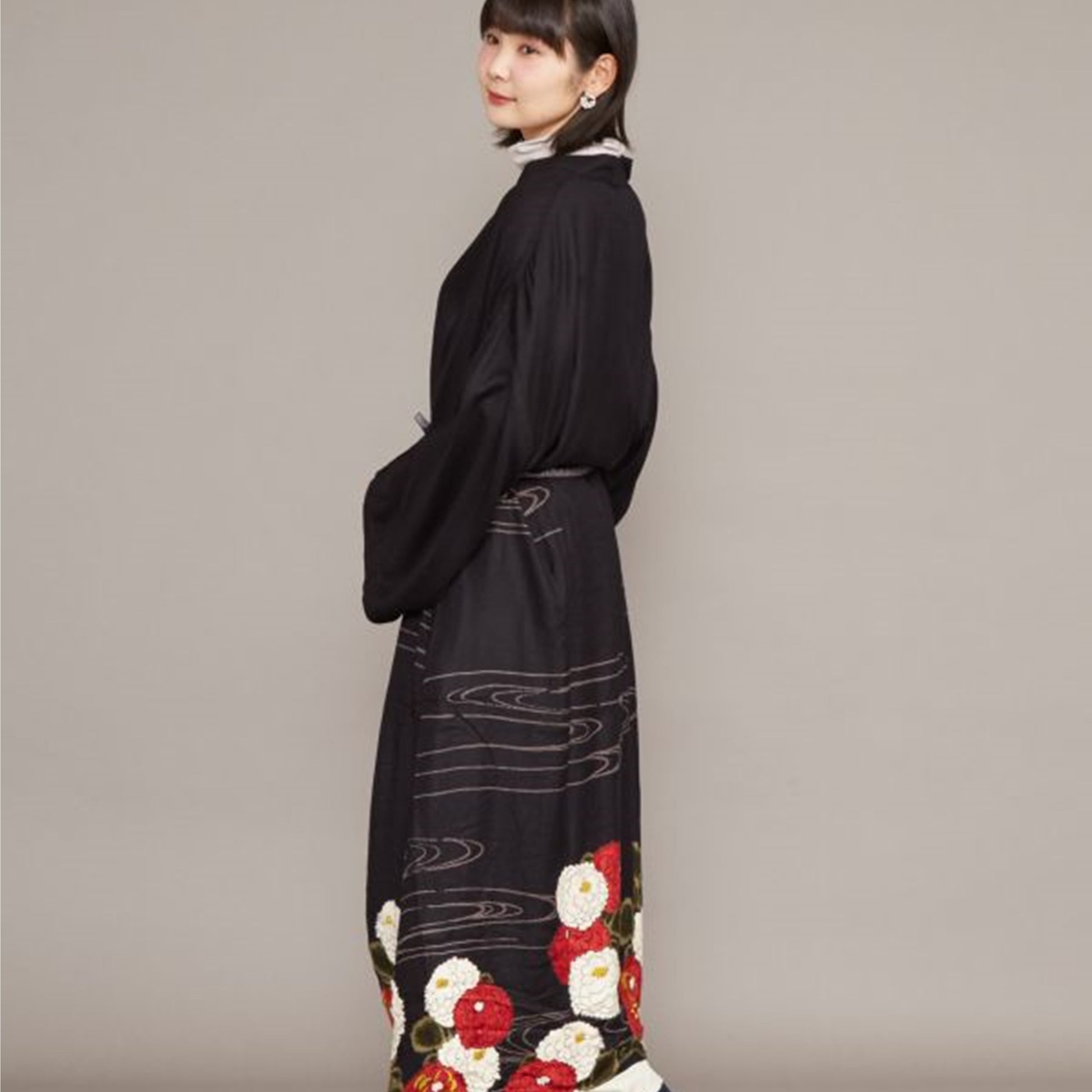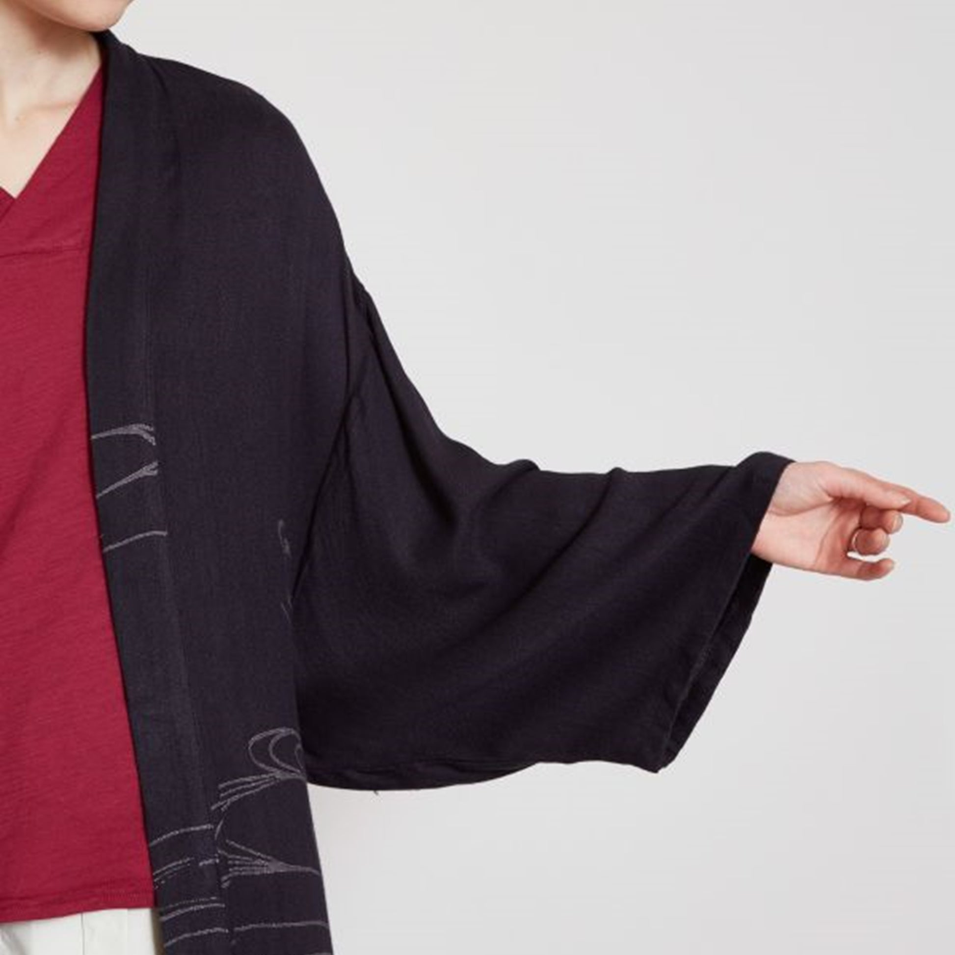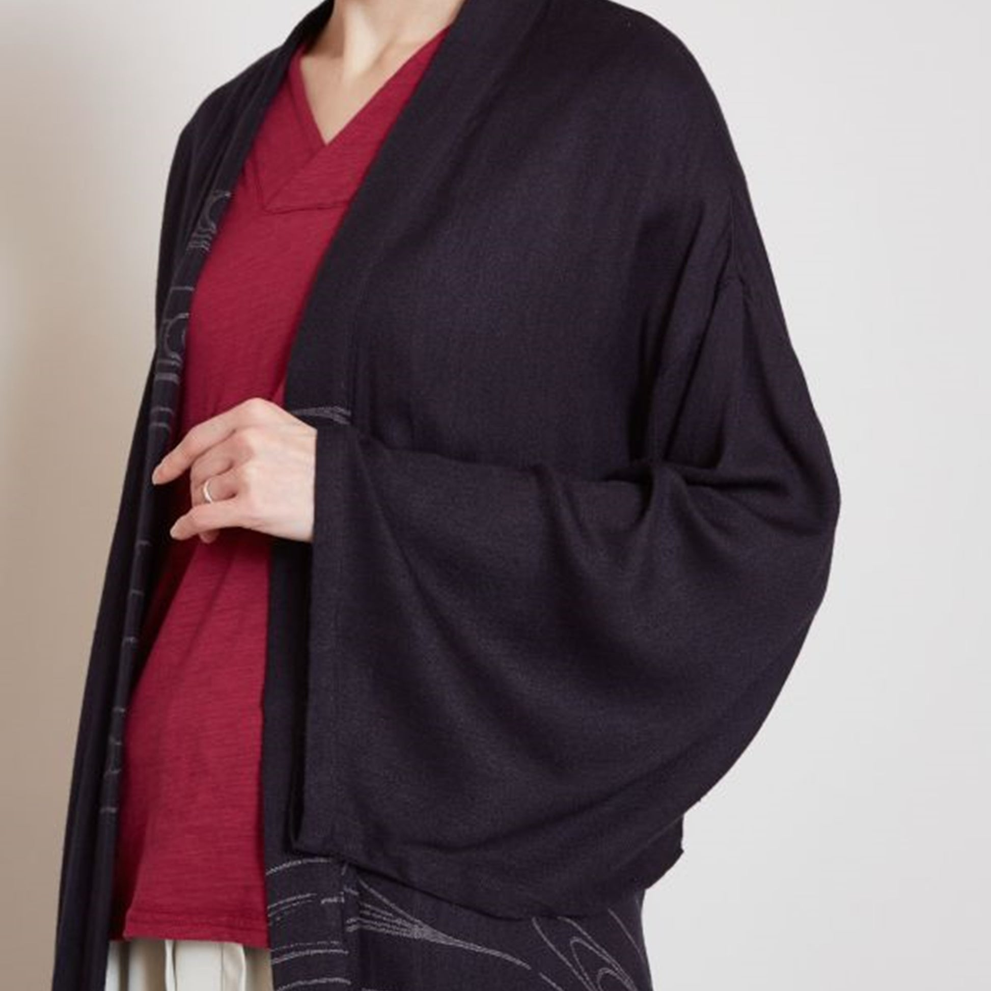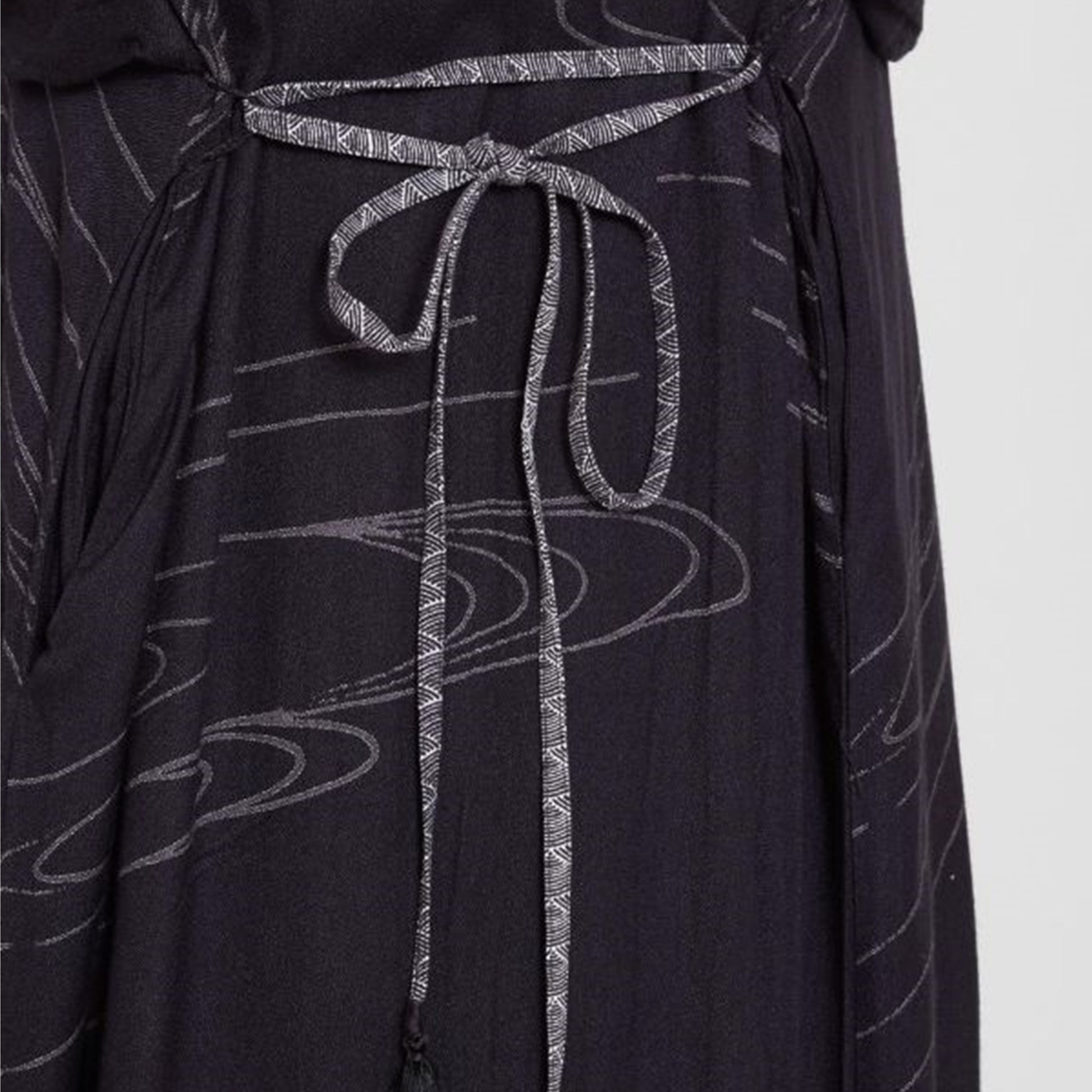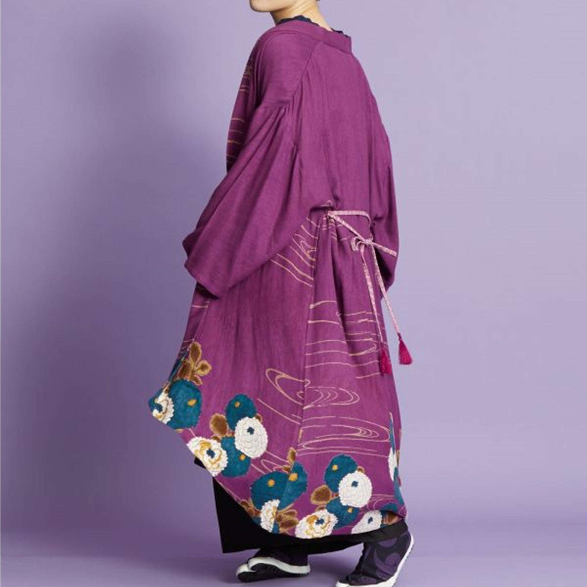 タッセルの付いた紐がついており、帯のように結んだり好きなスタイルで着こなせます