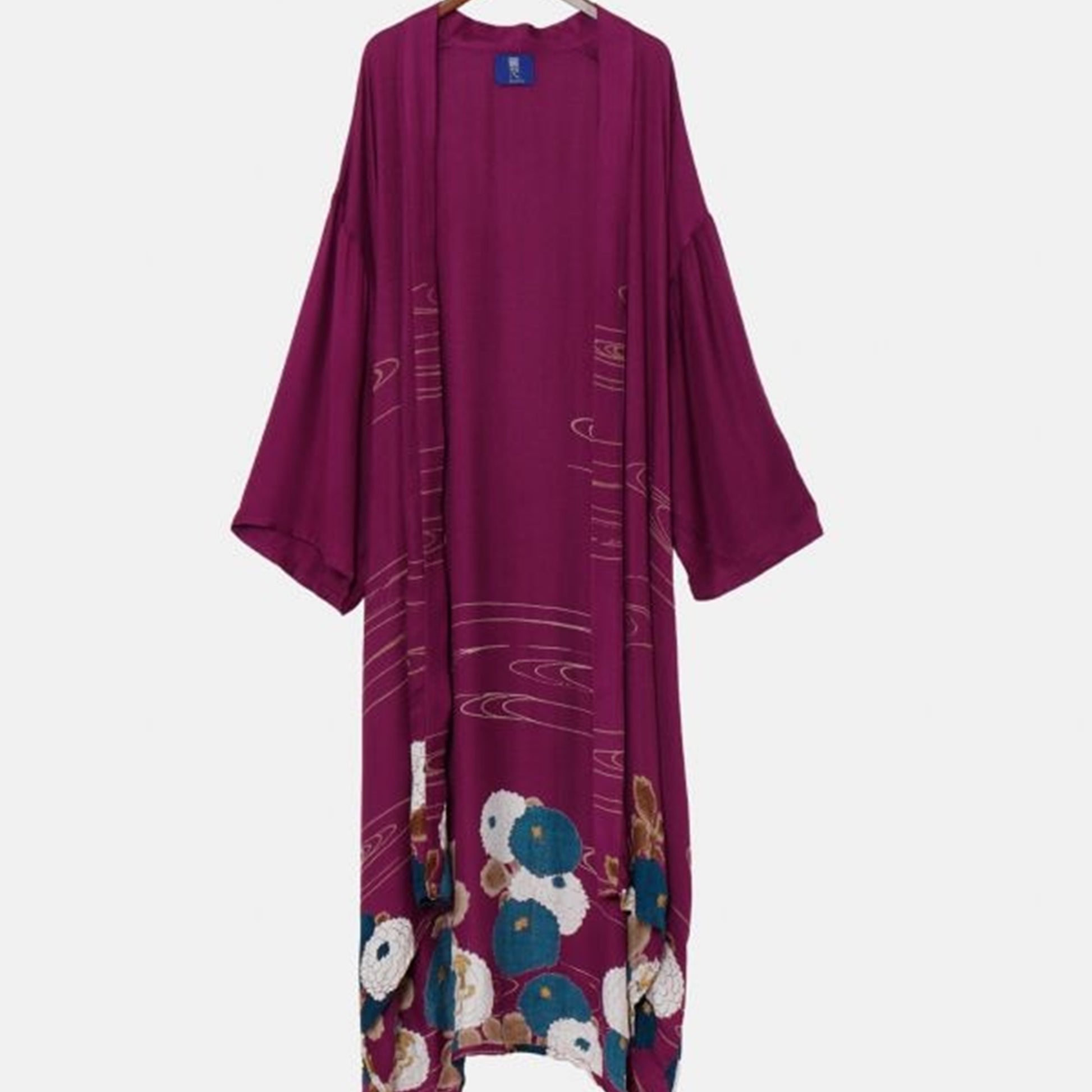 間もなく宵になる頃の、夕暮れ時の空の様子と美しい牡丹を表した着物風の長羽織