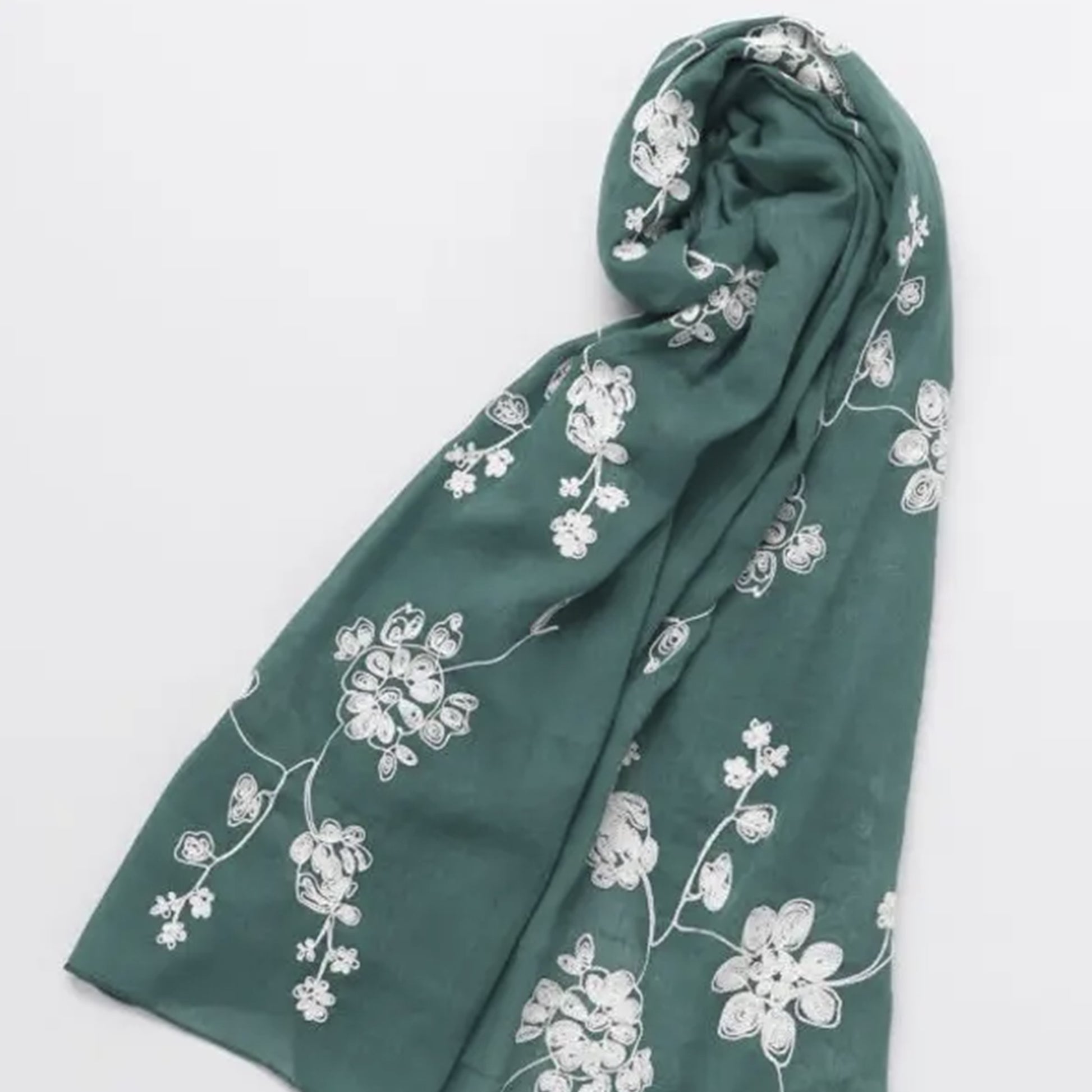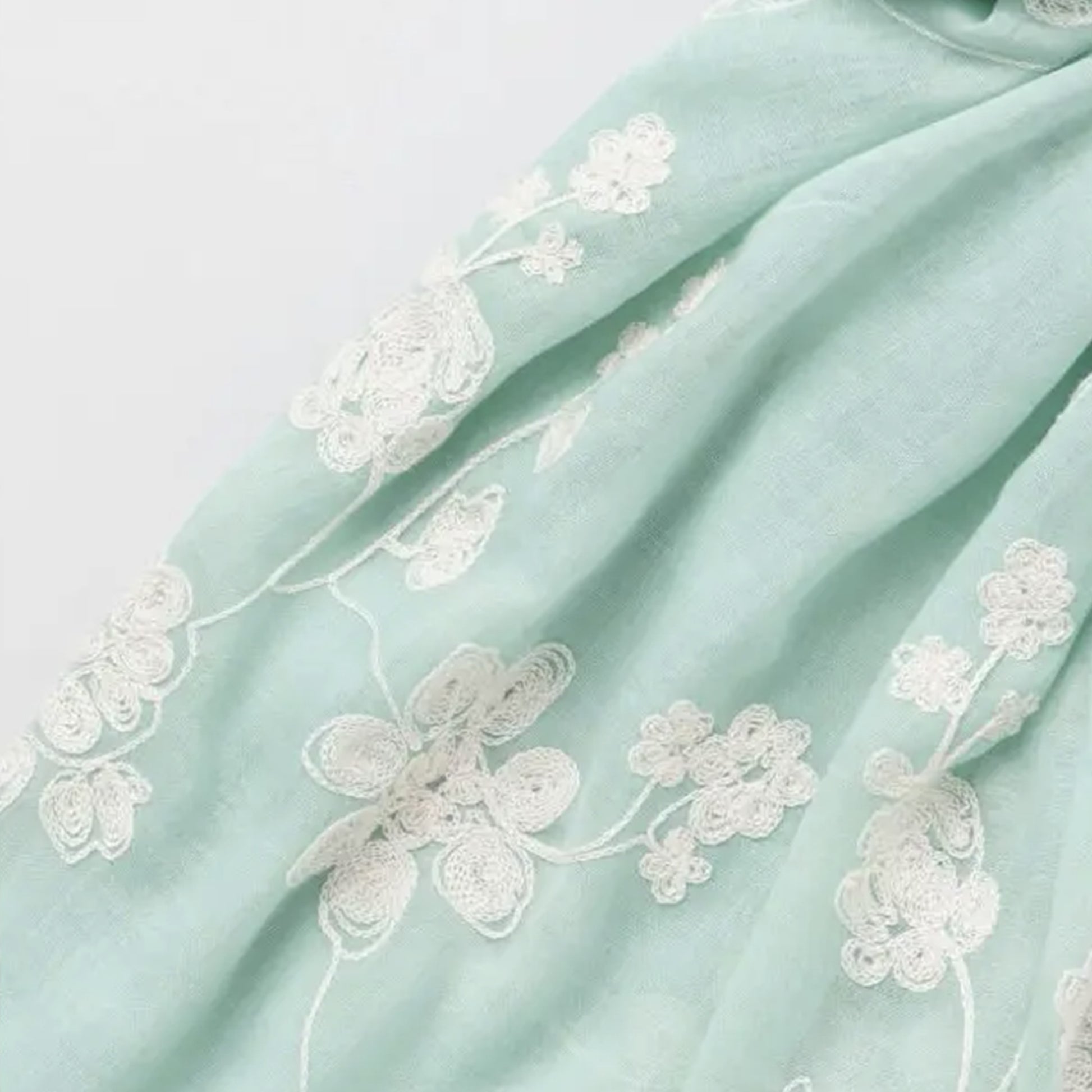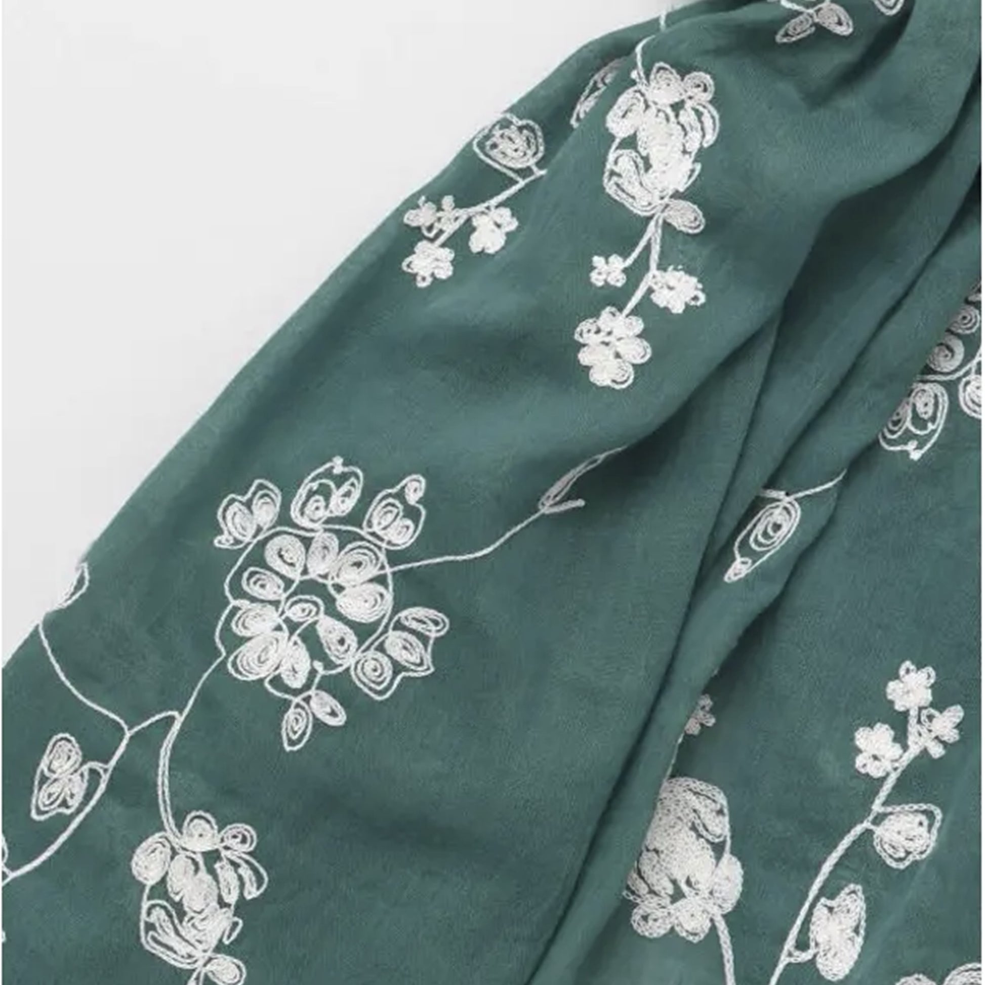 大判サイズなので肩から掛けてショールとして使うこともでき、コーディネートのアクセントに最適。やや厚めの生地感で、肌寒い日や冷房対策にもおすすめです。