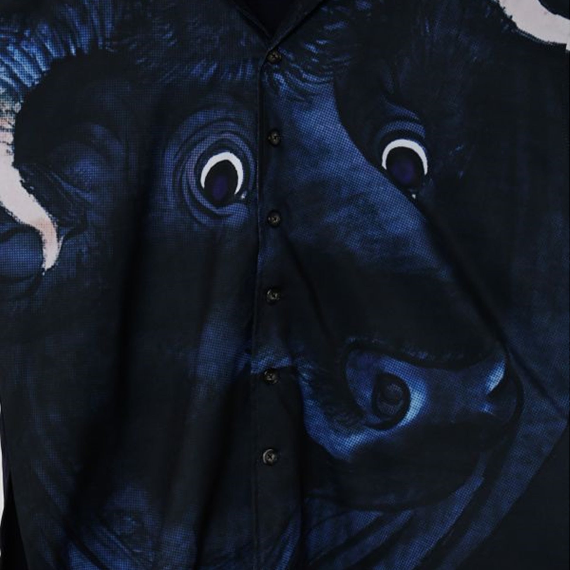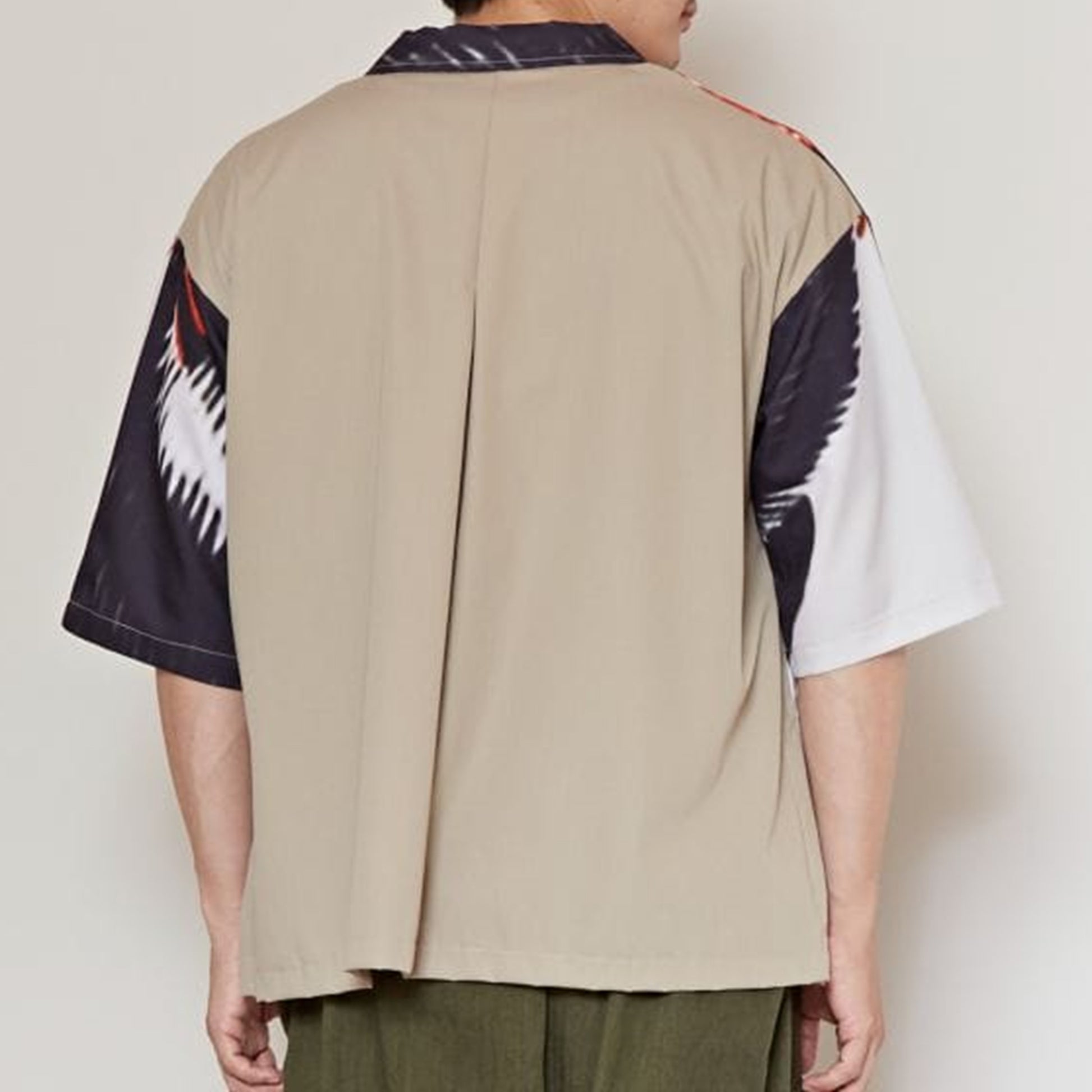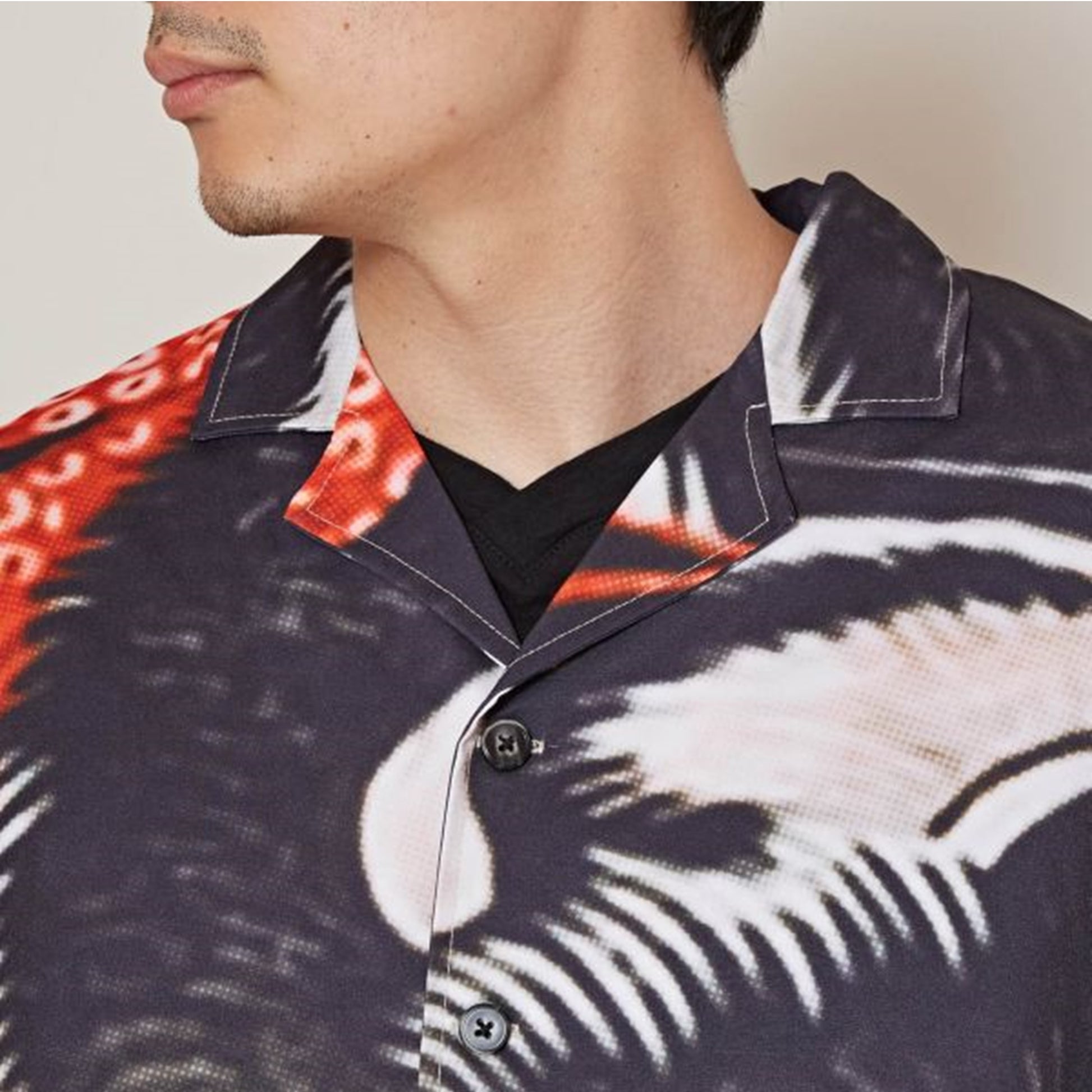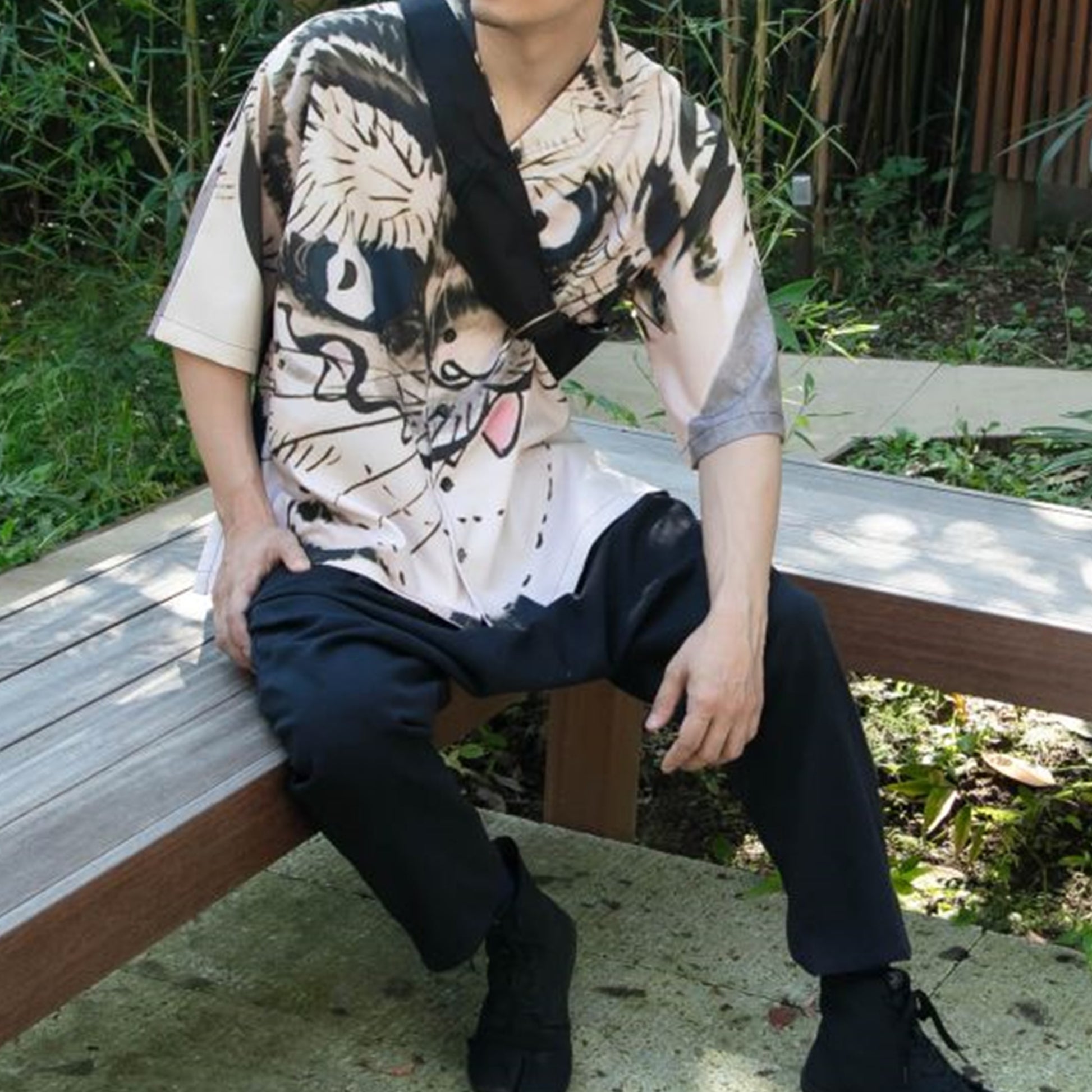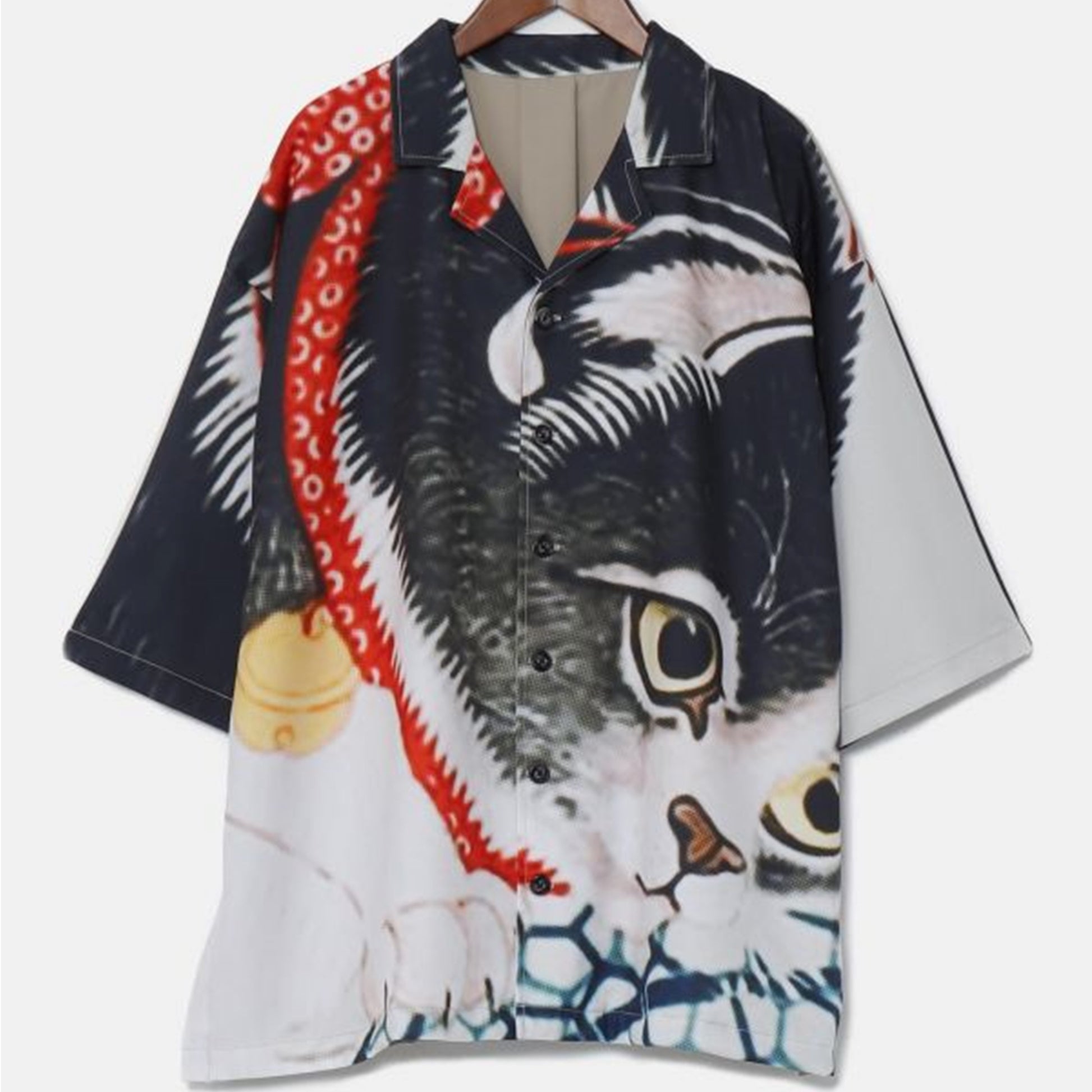 裏地に動物の顔を大胆にプリントした裏勝りデザインのシャツ
