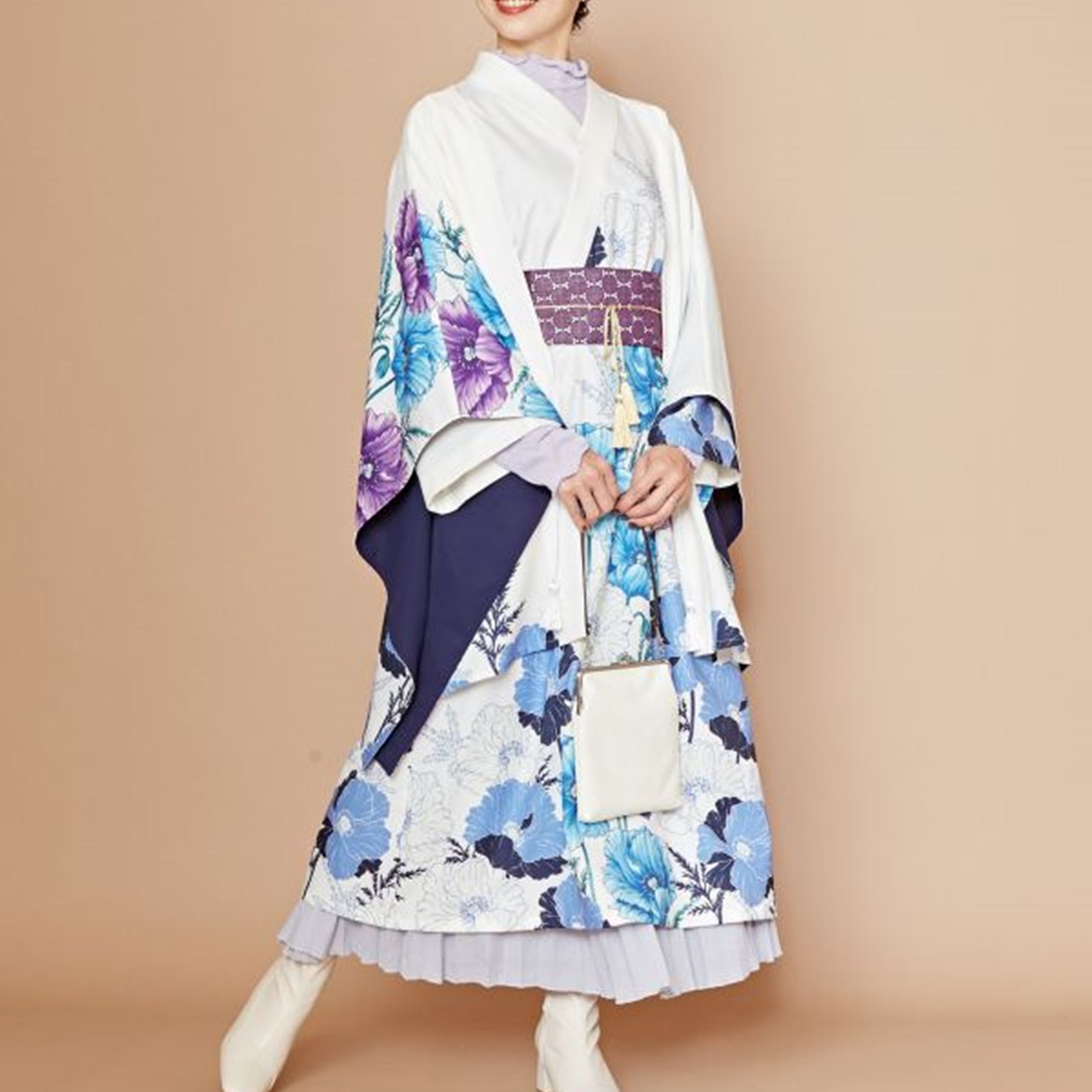 ケシの花を大胆にプリントした羽織