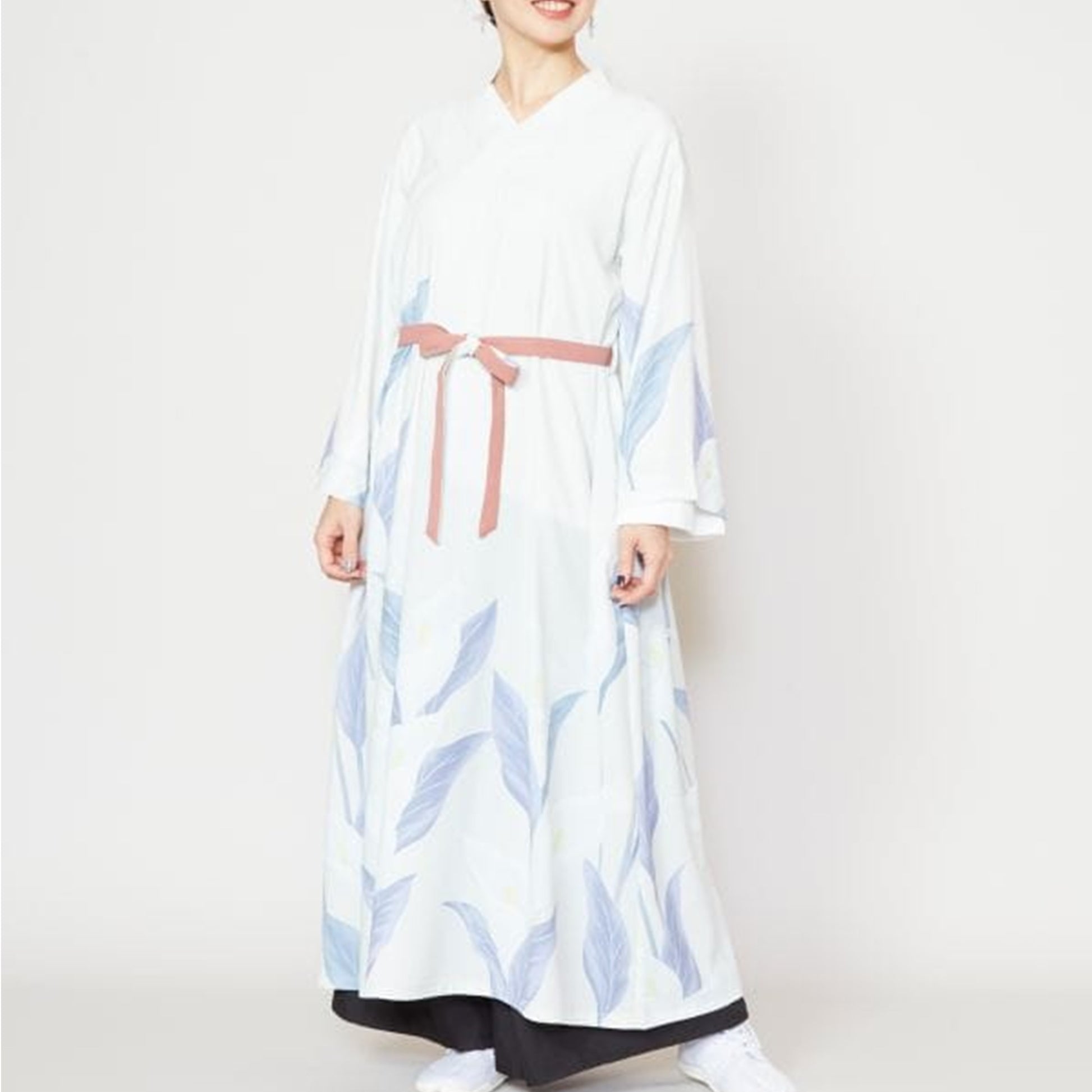 水芭蕉を大胆にプリントした羽織付きワンピース