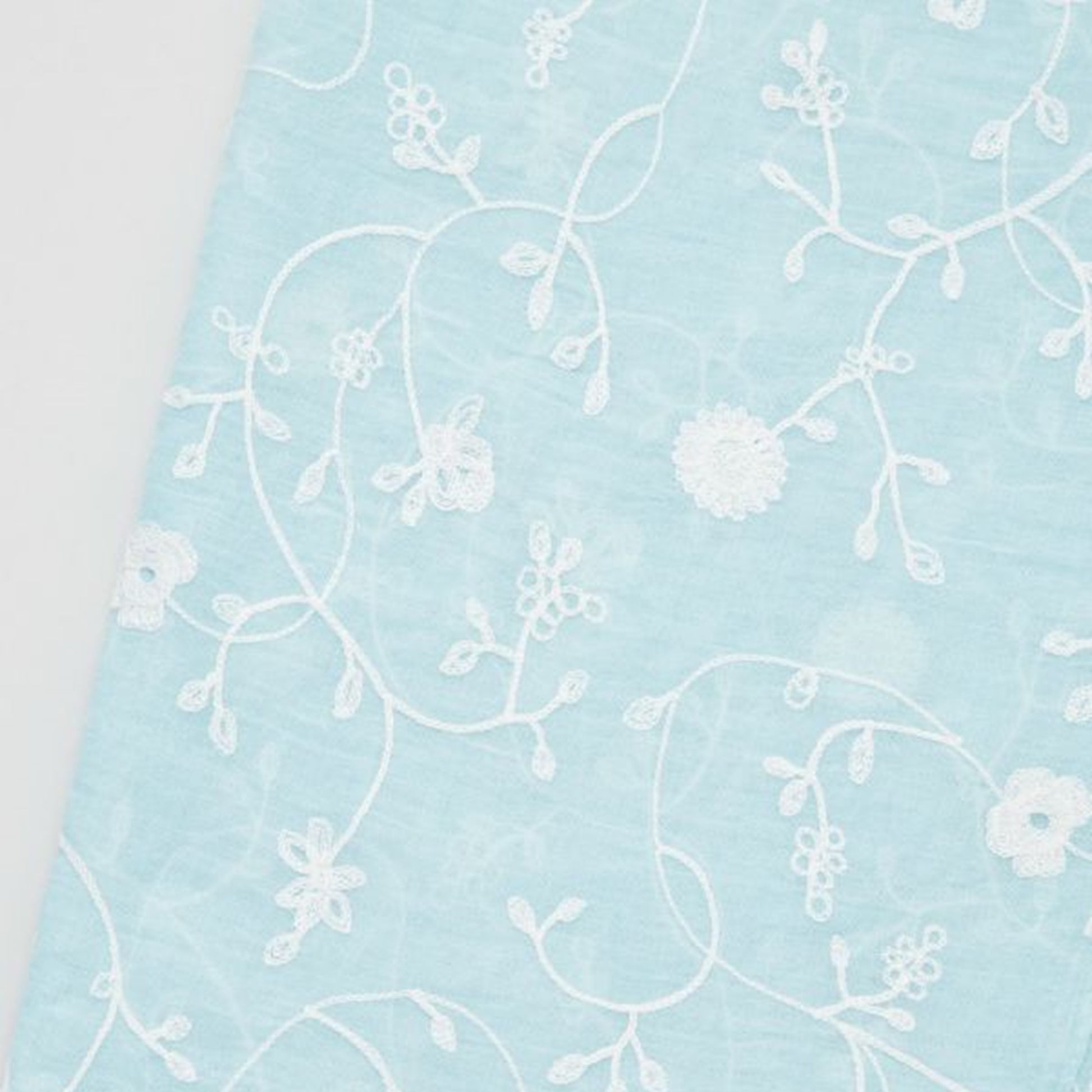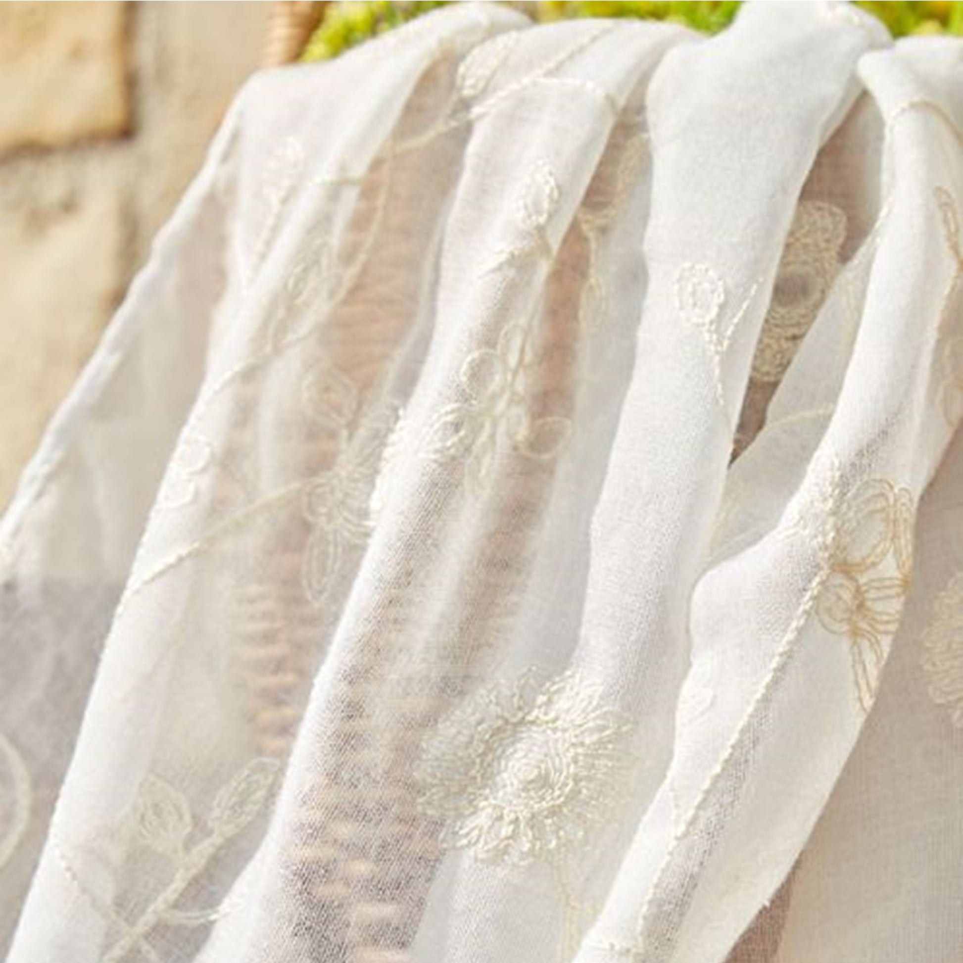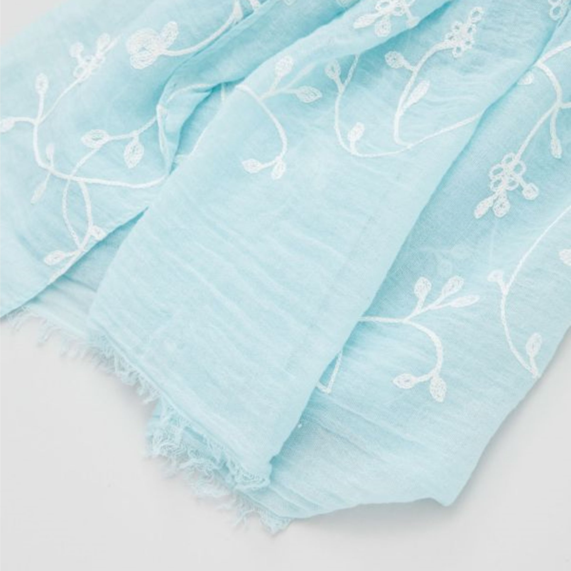 花柄の流れるような刺繍が温もりを感じる春らしいストールです。