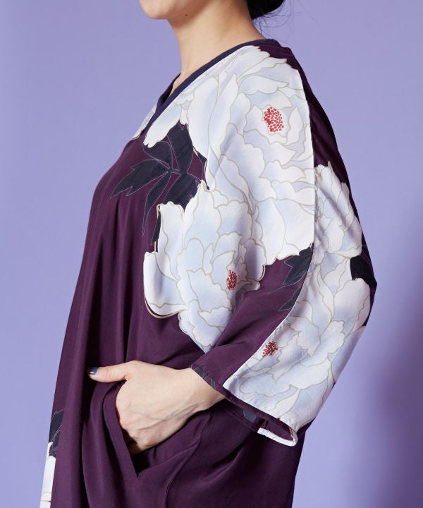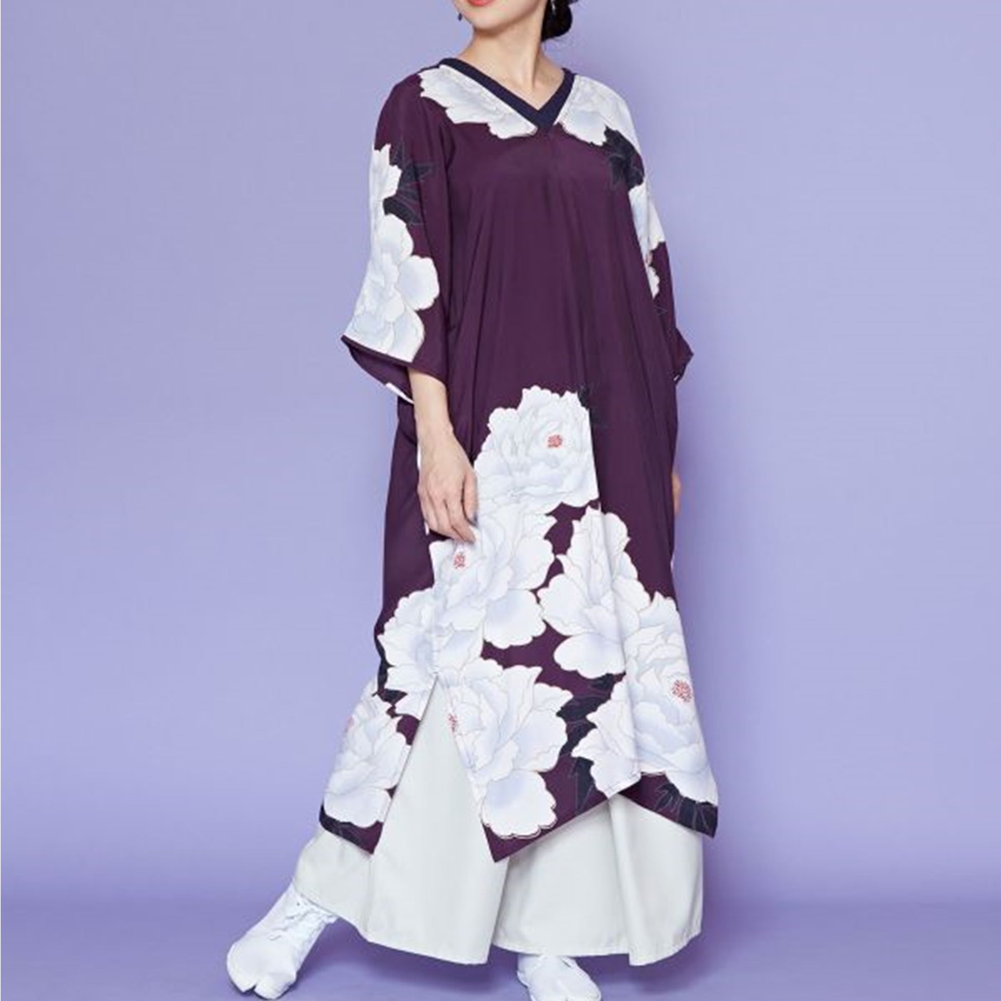 彼岸花、百合、牡丹の花を大胆にプリントしたワンピース