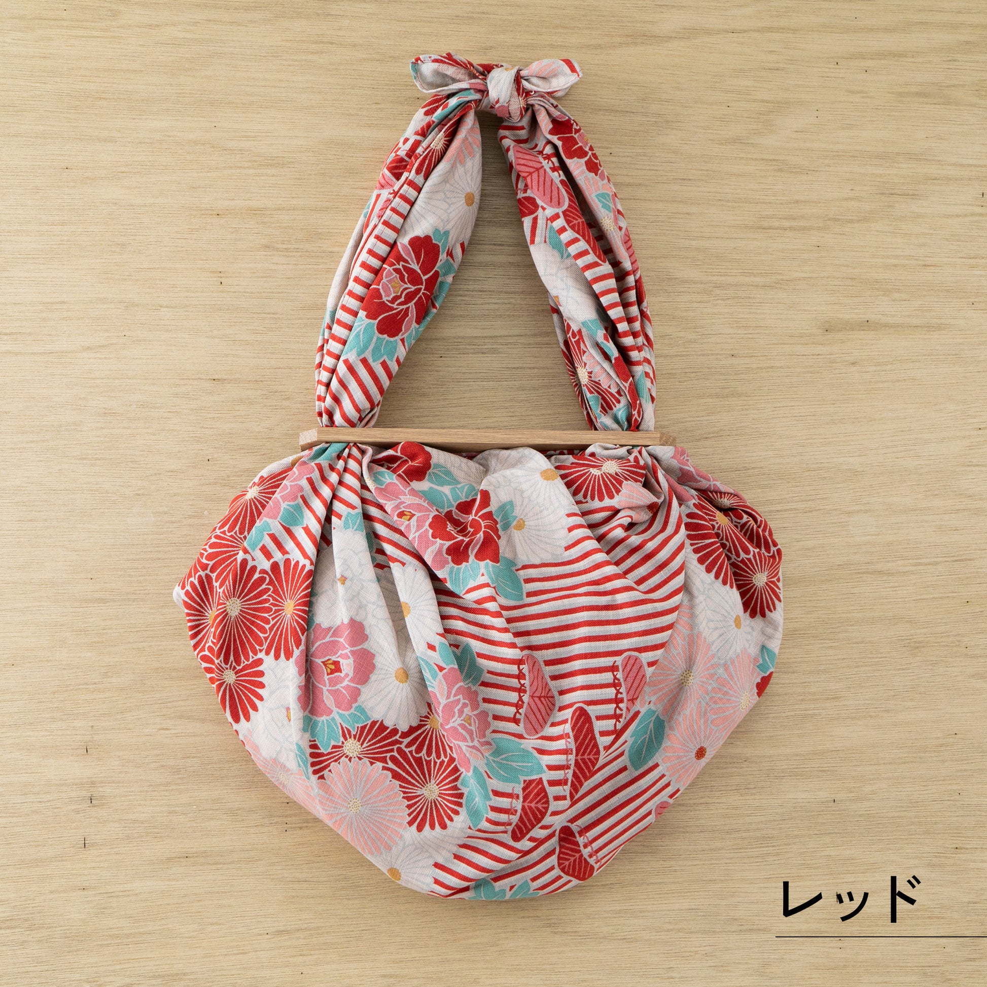 のレンオリジナルデザインの中でも人気の「レトロフラワー風呂敷」と、ライスプロダクトが開発した「風呂敷パッチン」をセットにしたこの商品は、誰でも簡単に、そしておしゃれに風呂敷バッグを作ることができます。