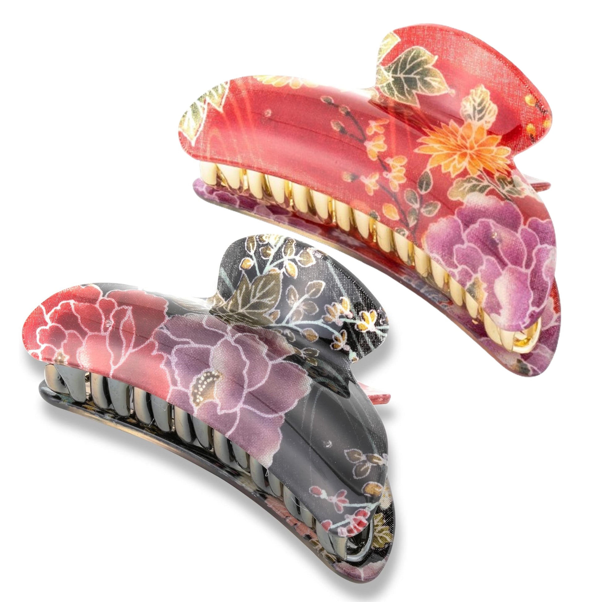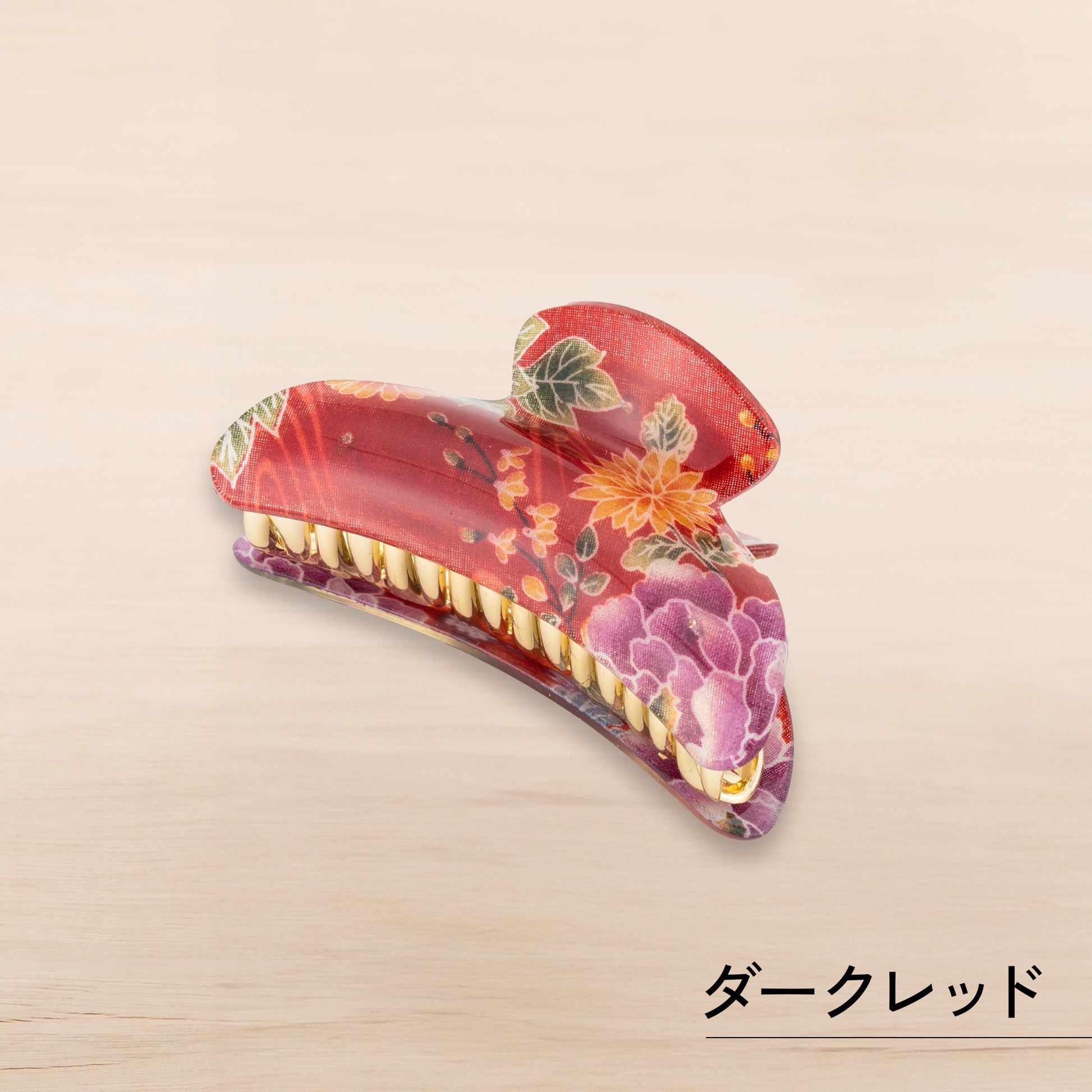 シンプルですが大きめサイズで、華やかで品の良い和柄デザインが目を引きます。 どんな装いにも合わせられるので、髪をさっとまとめたい時の普段使いにはもちろん、パーティーなどのヘアアレンジにもお使いいただけます。