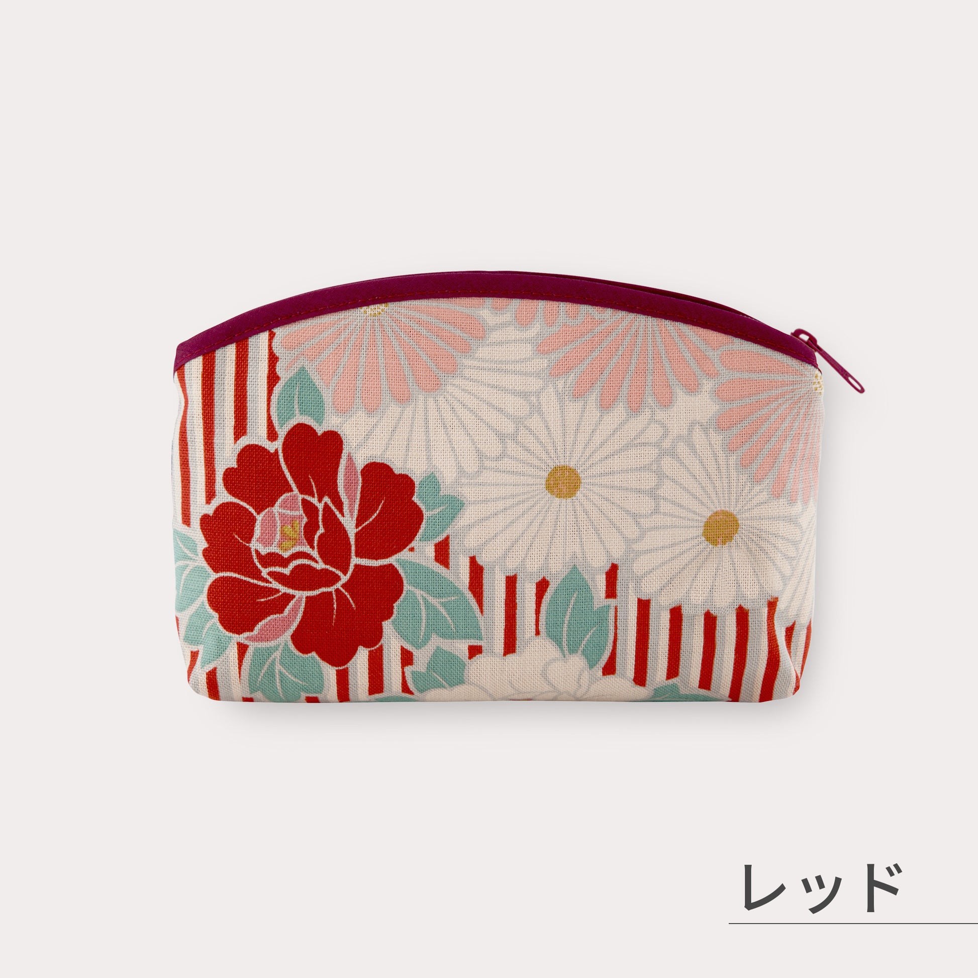 日本の美意識を凝縮したのレンオリジナル「レトロフラワー」柄の化粧ポーチです。日本の伝統的な花である菊と牡丹をあしらった、優雅で気品あふれるデザイン。バッグに入れてもかさばらないスリムな形状ながら、見た目以上の収納力を備えています。ファスナーはそれぞれの生地に合わせた上品な色を選んでおり、統一感のあるデザインに仕上げました。