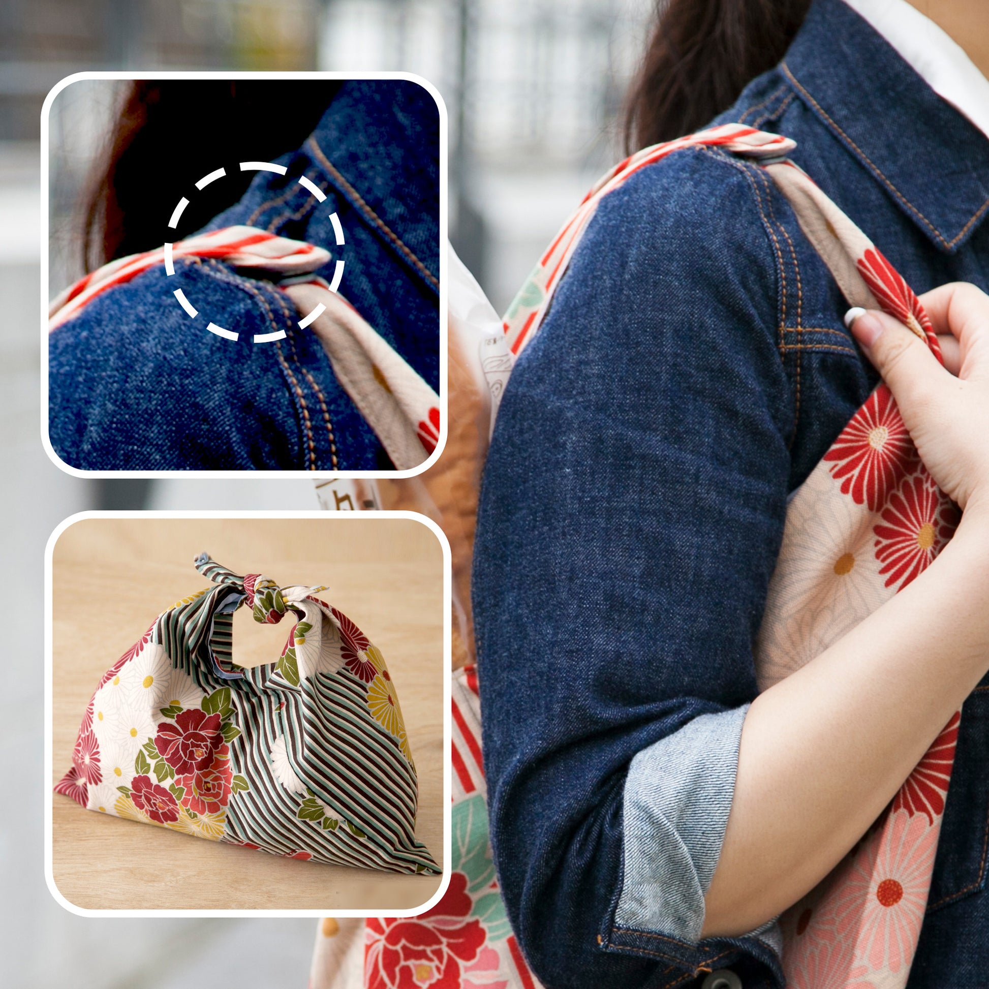 使いたいときに風呂敷でバッグを作るのは慣れていない、荷物をスッキリさせたいからメインバッグとサブバッグの両方を持ち歩くのはちょっと…そんな方におすすめです。