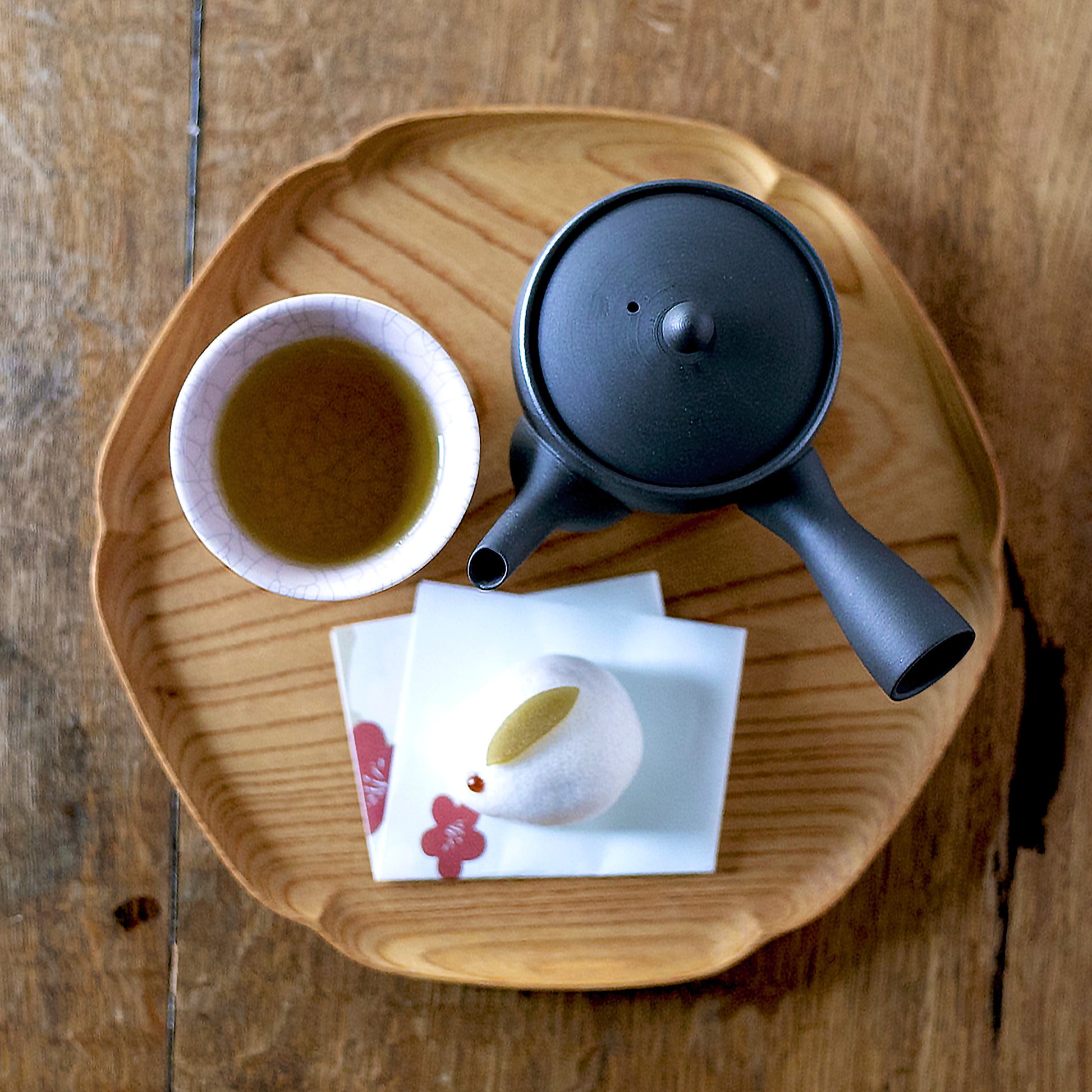 懐紙は茶席だけのものではなく、日常の暮らしでも心地よく役立つ一枚です。急須で淹れたお茶とともに、和菓子をのせて客人を迎えれば、さりげないおもてなしに。ほかにも、