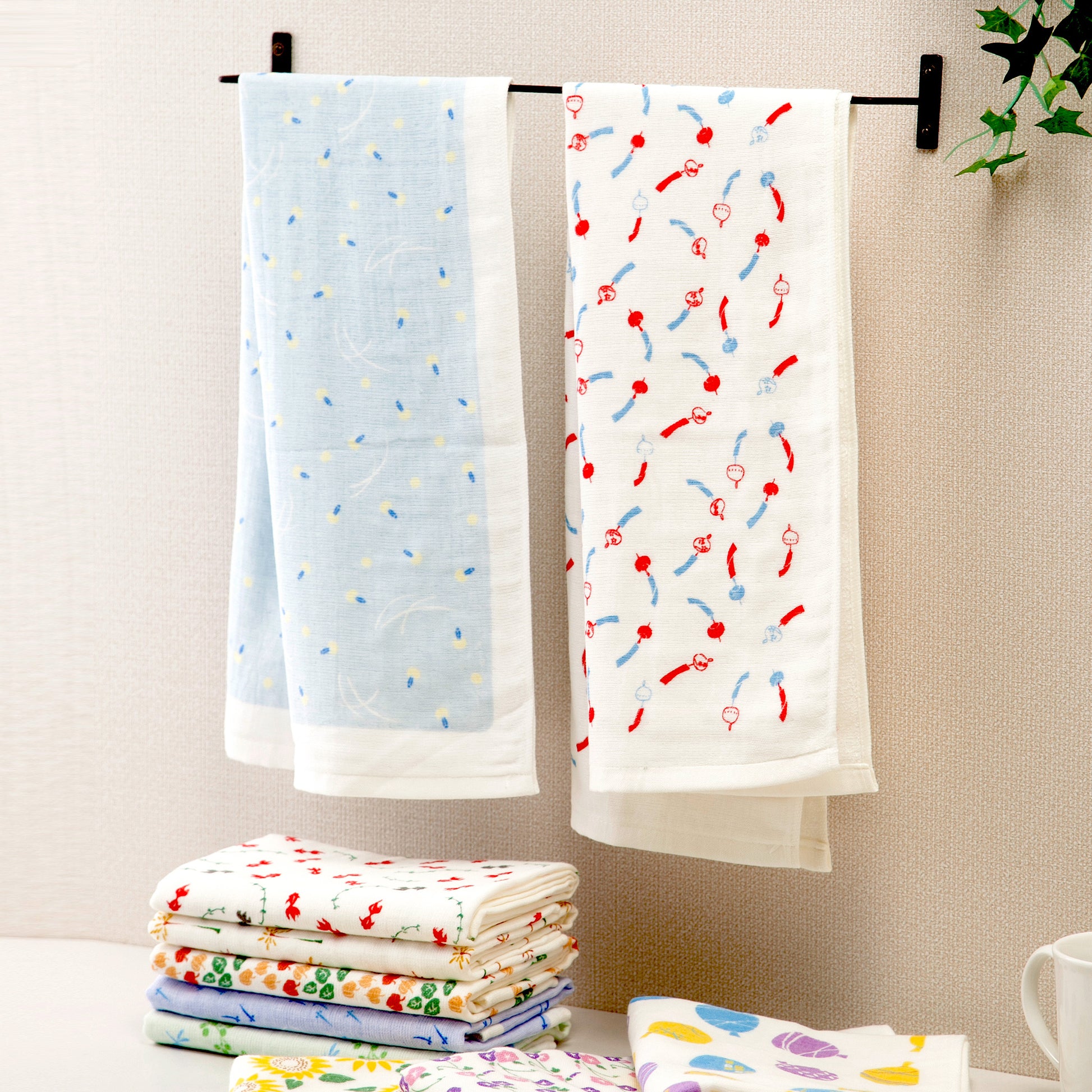 異なる柄で気分を変えたり、お気に入りを一年中使ったり。お揃いのフェイスタオルと合わせて楽しむのもおすすめです。
