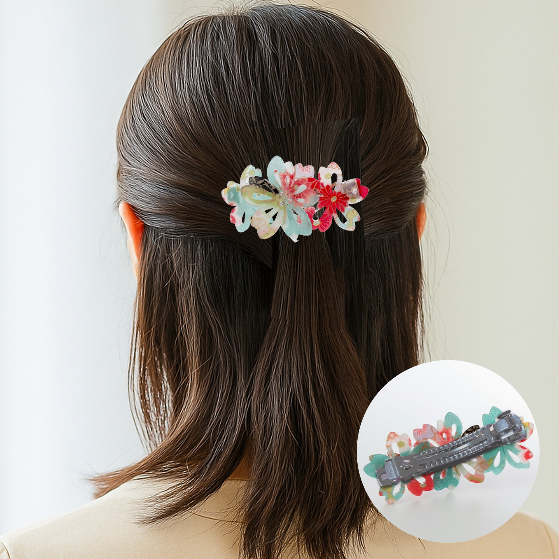 使い方は、挟むだけの簡単なクリップ式。手間をかけることなく、髪をサッとまとめたり、ハーフアップのアクセントにしたりと、簡単にヘアアレンジが楽しめます。しっかりと髪をホールドしてくれるため、ちょっとしたお出かけから、浴衣や着物などの特別な日のヘアスタイルまで幅広く活躍。忙しい朝でも、日本の美意識が詰まった華やかなスタイルを即座に叶えます。