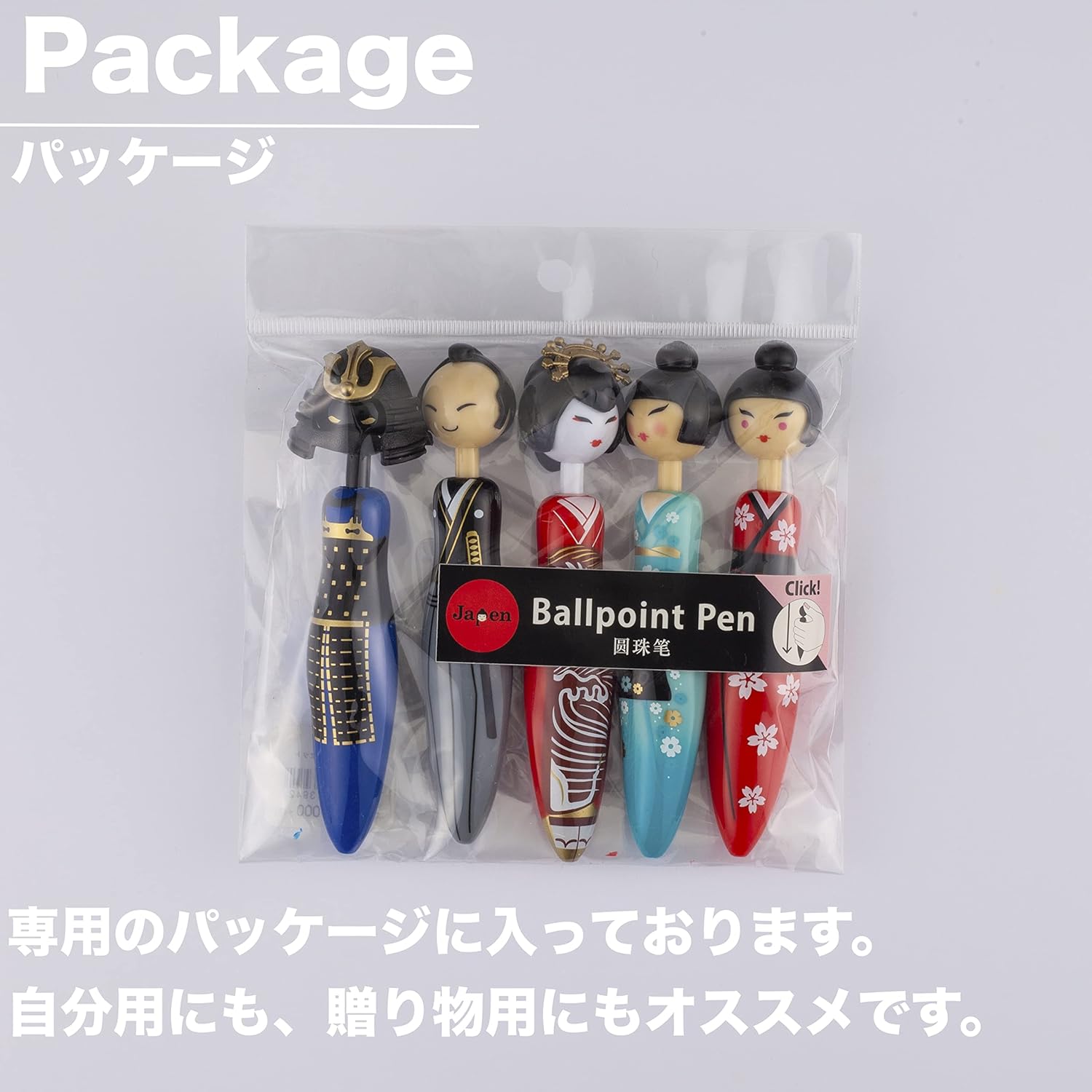 ユーモアたっぷりで可愛らしいデザインのユニークなボールペンです。持ちやすい形状と手頃な価格で、1度見たら忘れられないインパクトがあり、海外のお客様のお土産としてもご好評をいただいております。