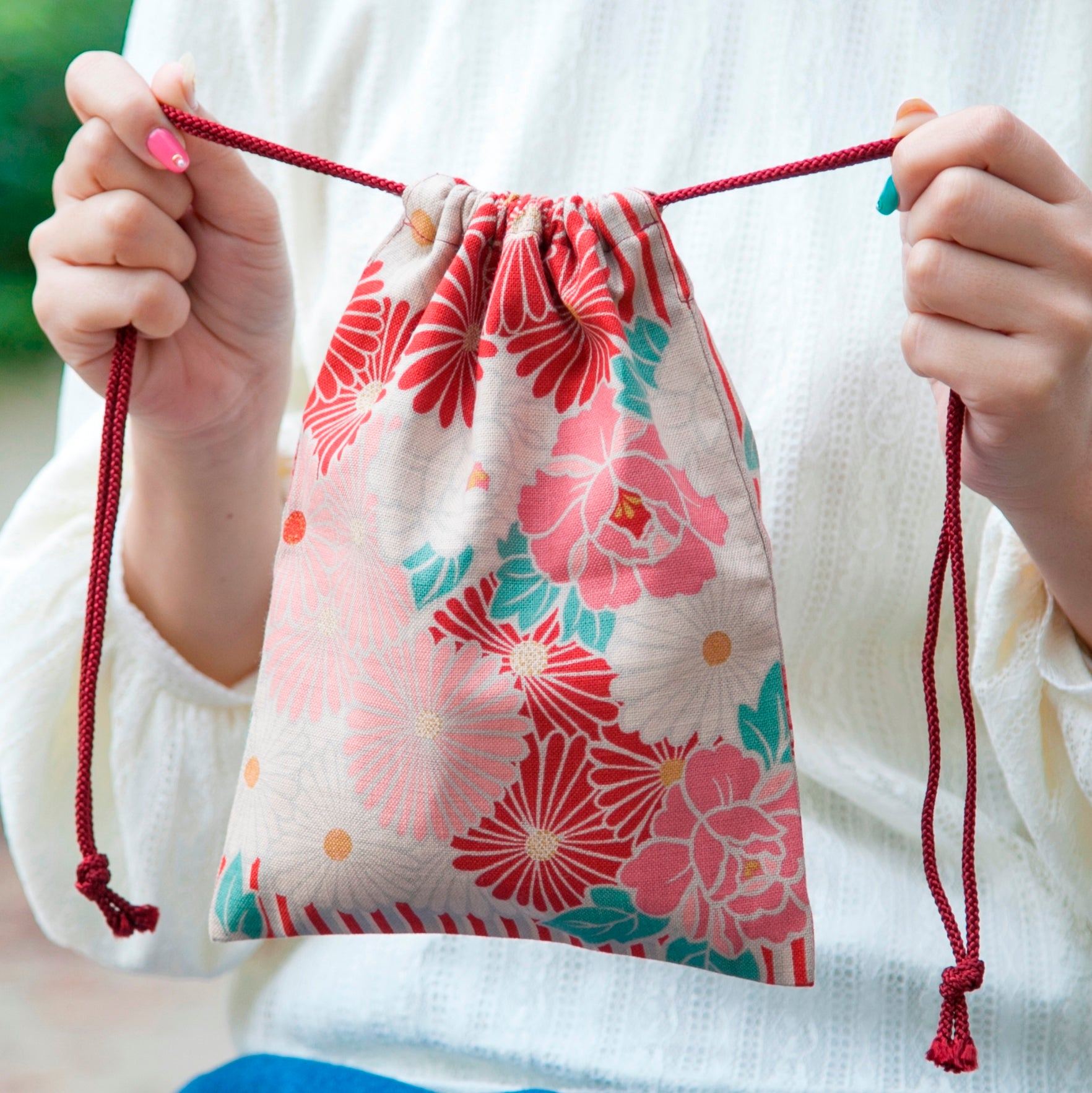 和と洋をつなぐ「レトロフラワー」巾着袋