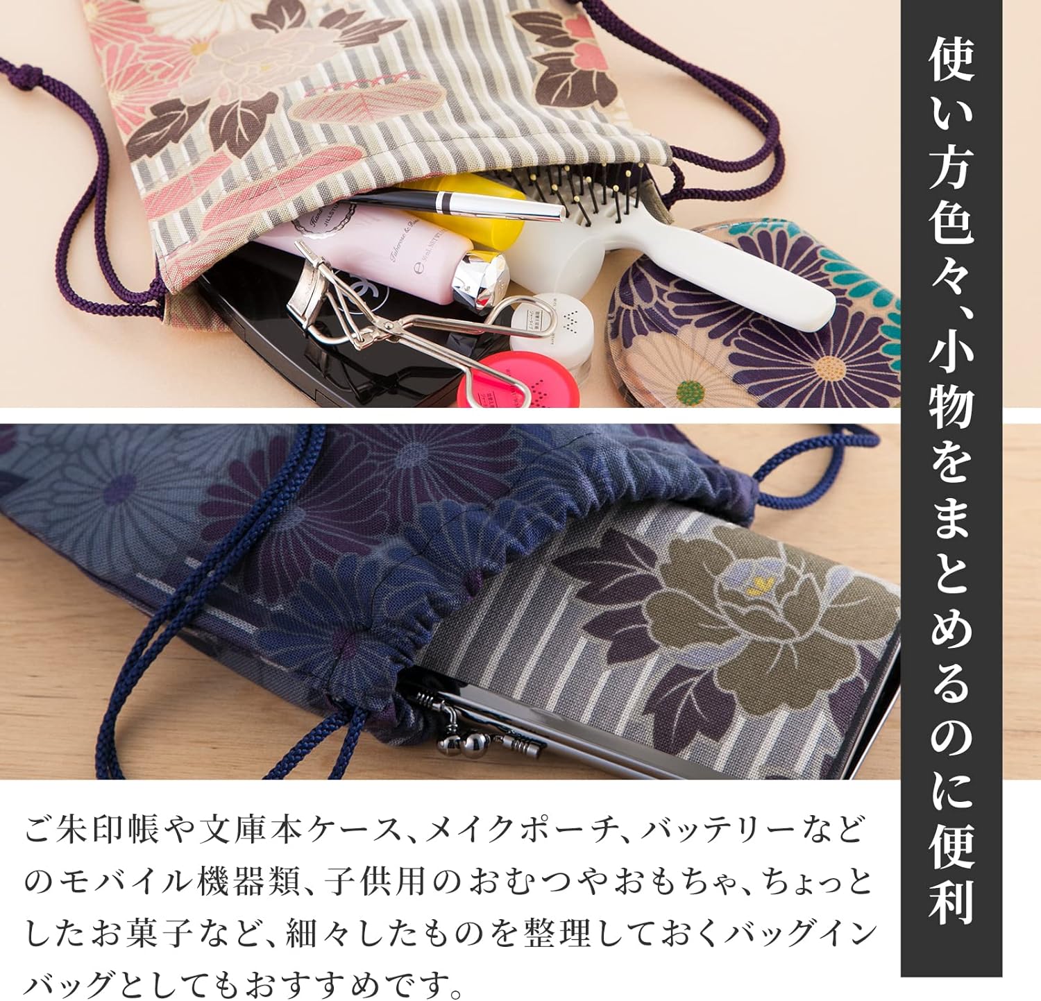 バッグの中の小物整理にぴったりで、軽量なので持ち運びにも便利。伝統的な和柄のデザインが、おしゃれなアクセントになります。