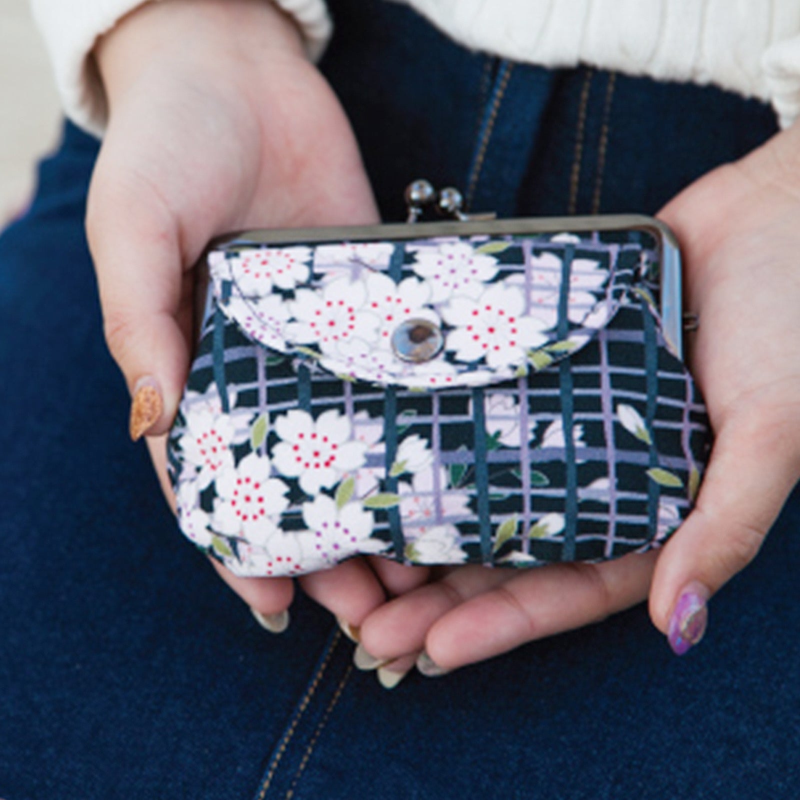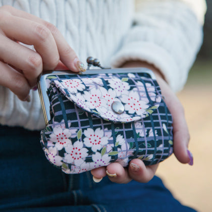 華やかな桜と格子のモダン柄が可愛らしい親子がま口財布