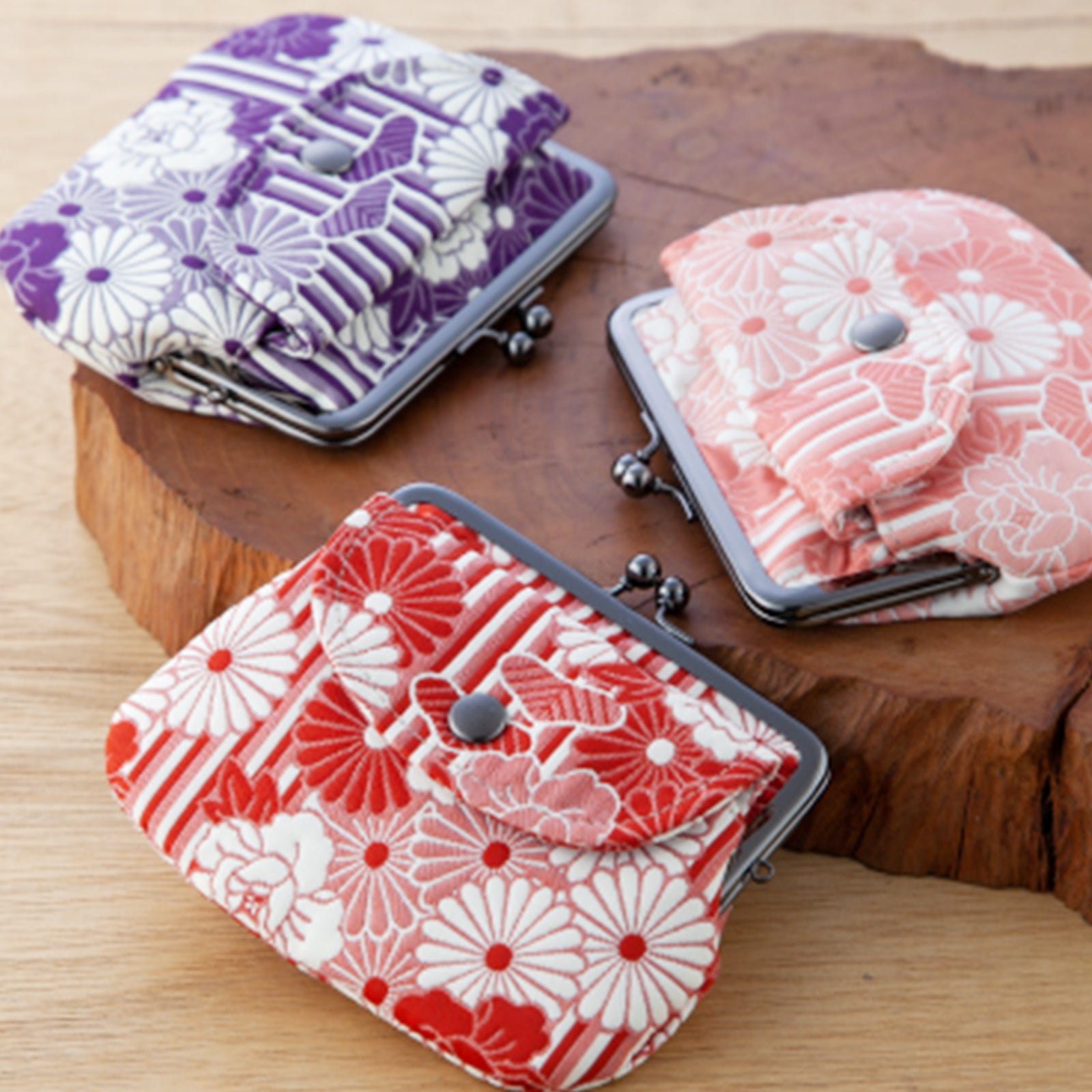 愛らしい花柄と、ふっくらとした質感が心地よい、手元に添えたくなる和の小物。手のひらサイズなのに収納力抜群。可愛さと機能性を備えたお財布です。