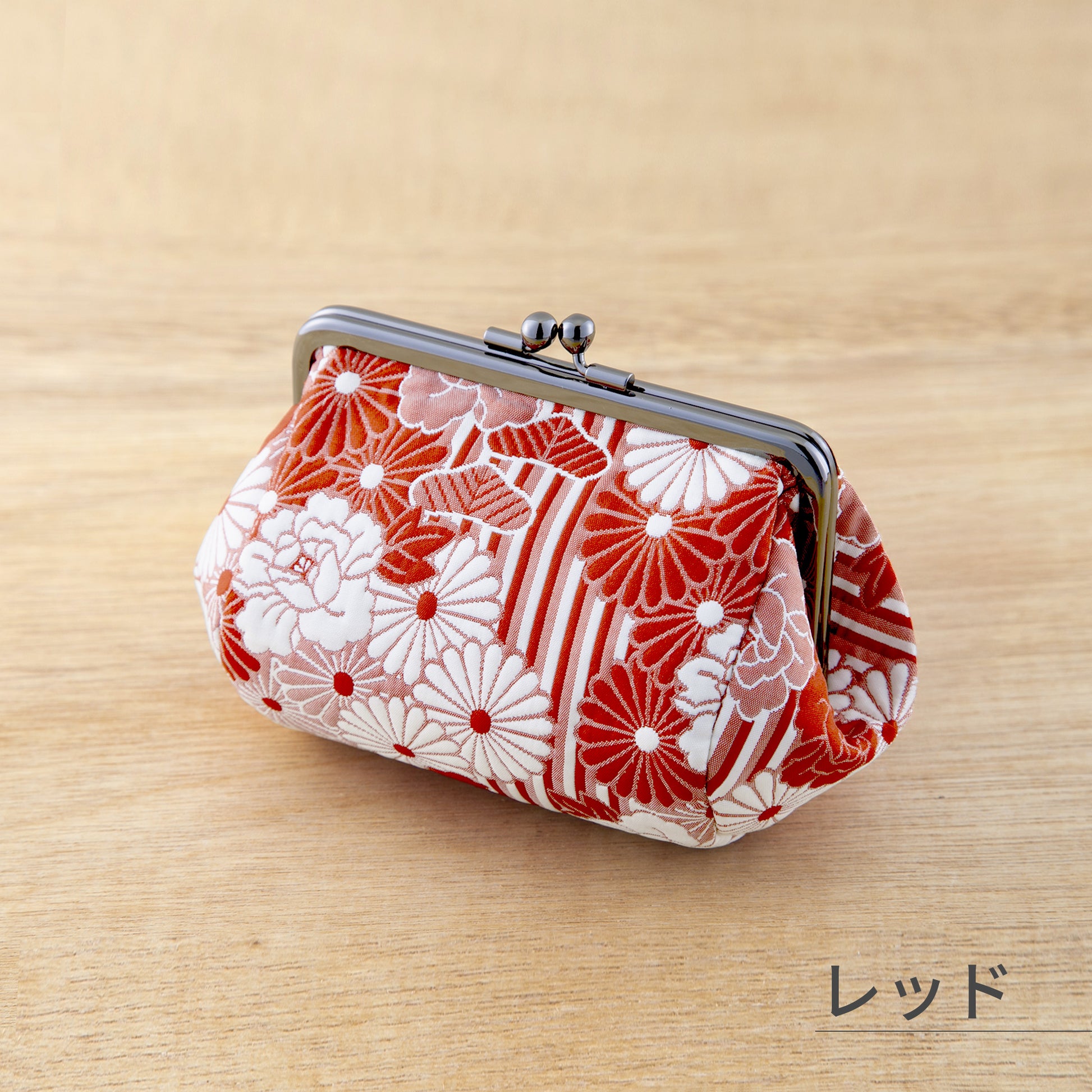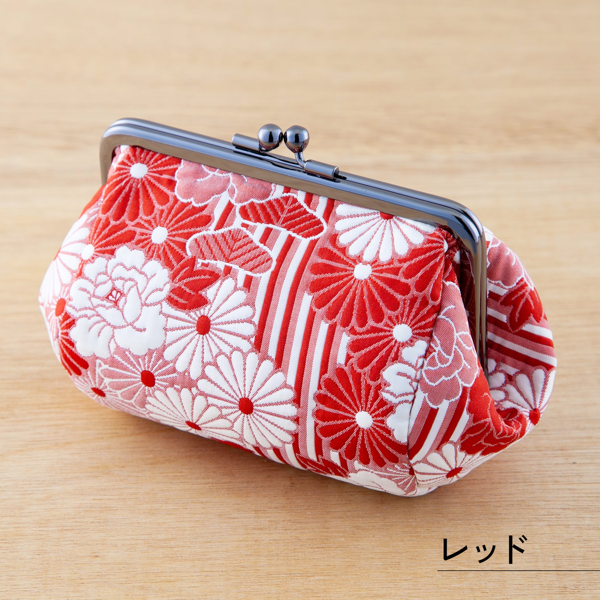 着物の帯などに用いられる日本の伝統技術「ふくれ織り」と、のレンがオリジナルでデザインした「レトロフラワー柄」がコラボレーションした、魅力あふれるがま口ポーチです。立体感のあるふっくらとした織り地と、丸みを帯びた俵型のフォルムが合わさり、他にはない豊かな質感と優しい印象を演出します。日本の伝統美と現代のライフスタイルを融合させた、長く愛用いただける逸品です。