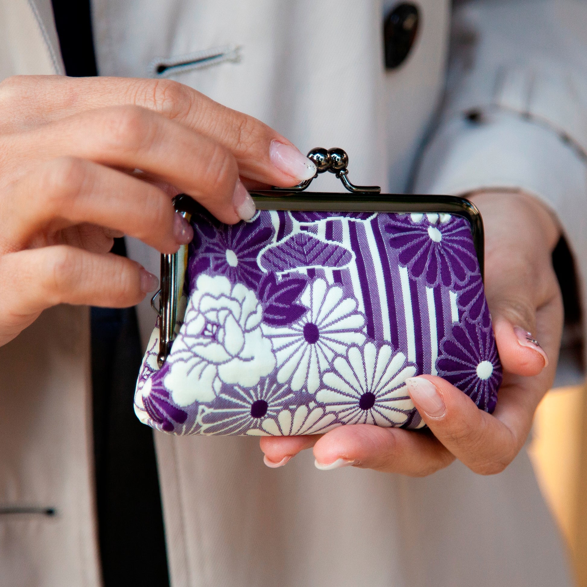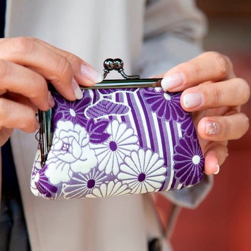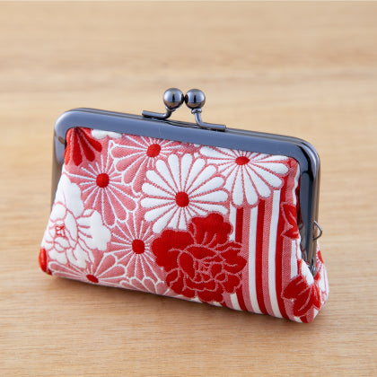 使用している口金は艶感があり、高級なふくれ織の生地とマッチし、上品な仕上がりになっております。