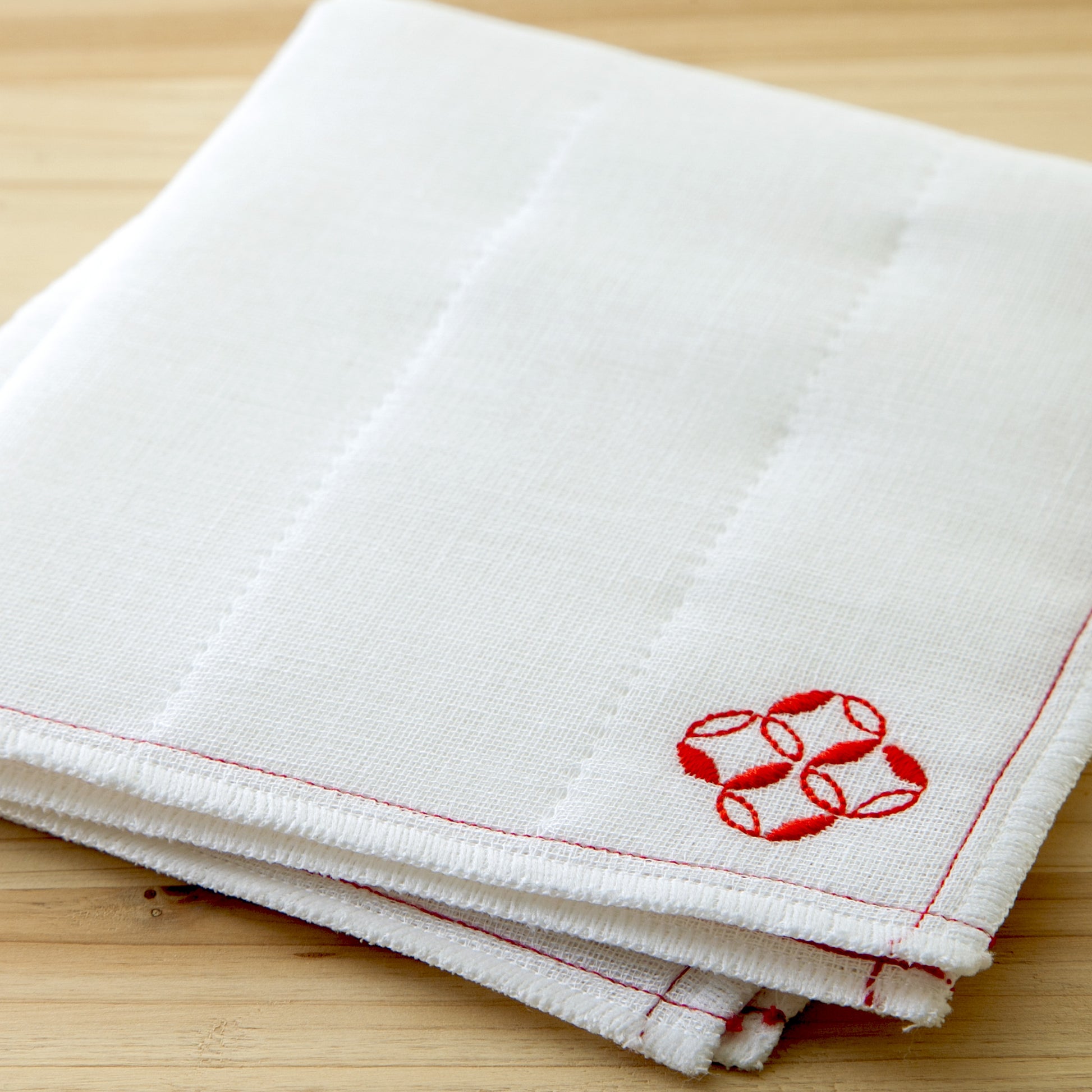 日本の吉祥文様を刺繍した温かみのあるデザインは、日常使いはもちろん、引越し祝いやお年賀など、大切な方への贈り物にもぴったり。やわらかな肌ざわりと厚みのある七枚重ねで、小さな手にも扱いやすく、使うほどに風合いが増します。洗っても耐久性が高く、毎日気軽に使える便利な一枚です。