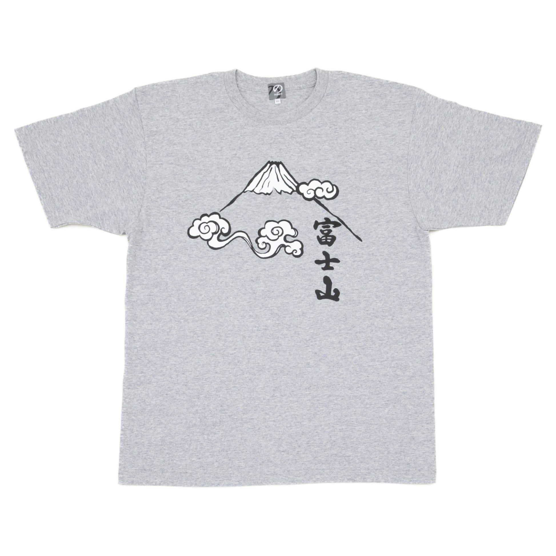 日本を代表する象徴といえば、富士山。 その富士山と積雲のイラスト、「富士山」の文字が、日本らしい元気さ溢れるデザインのTシャツです。