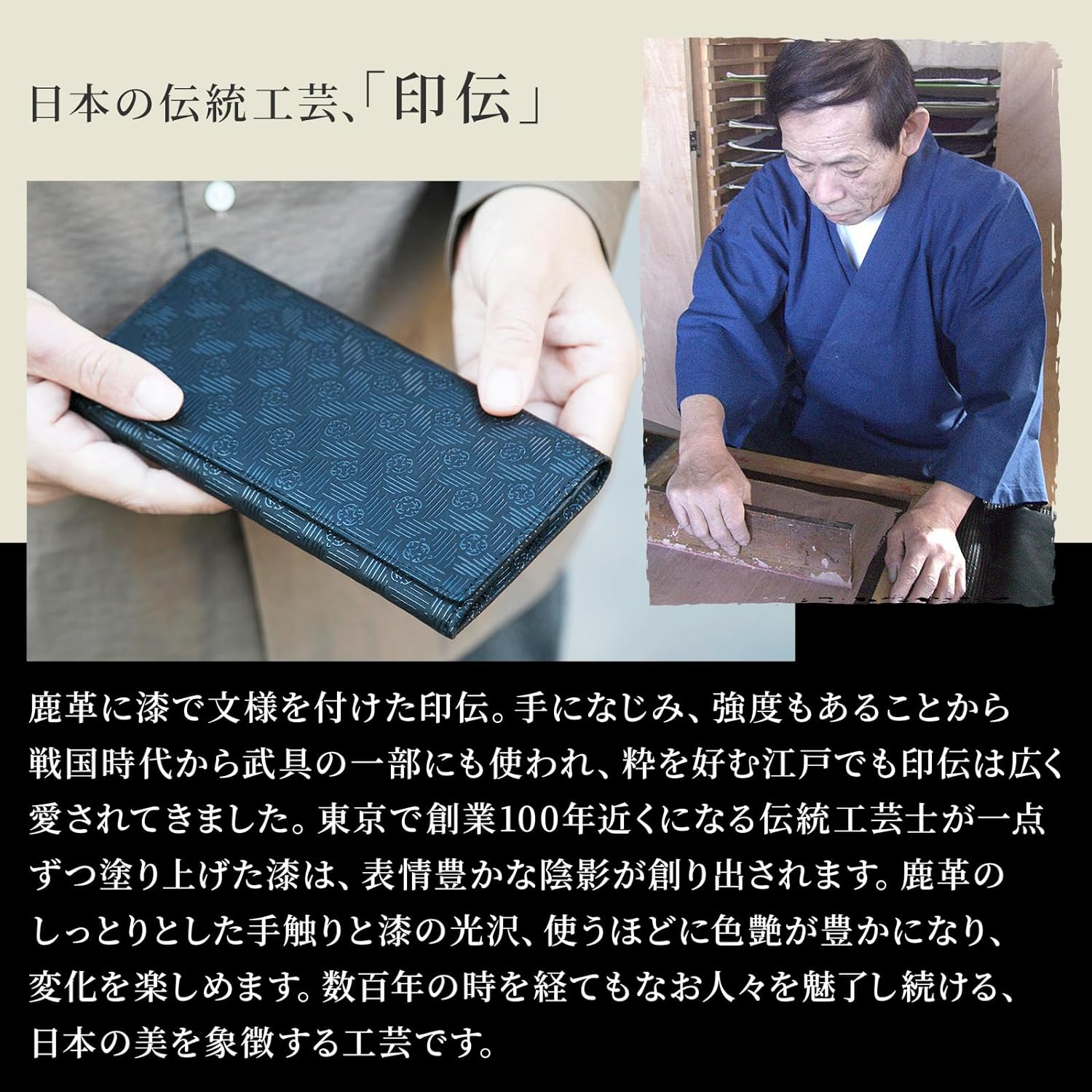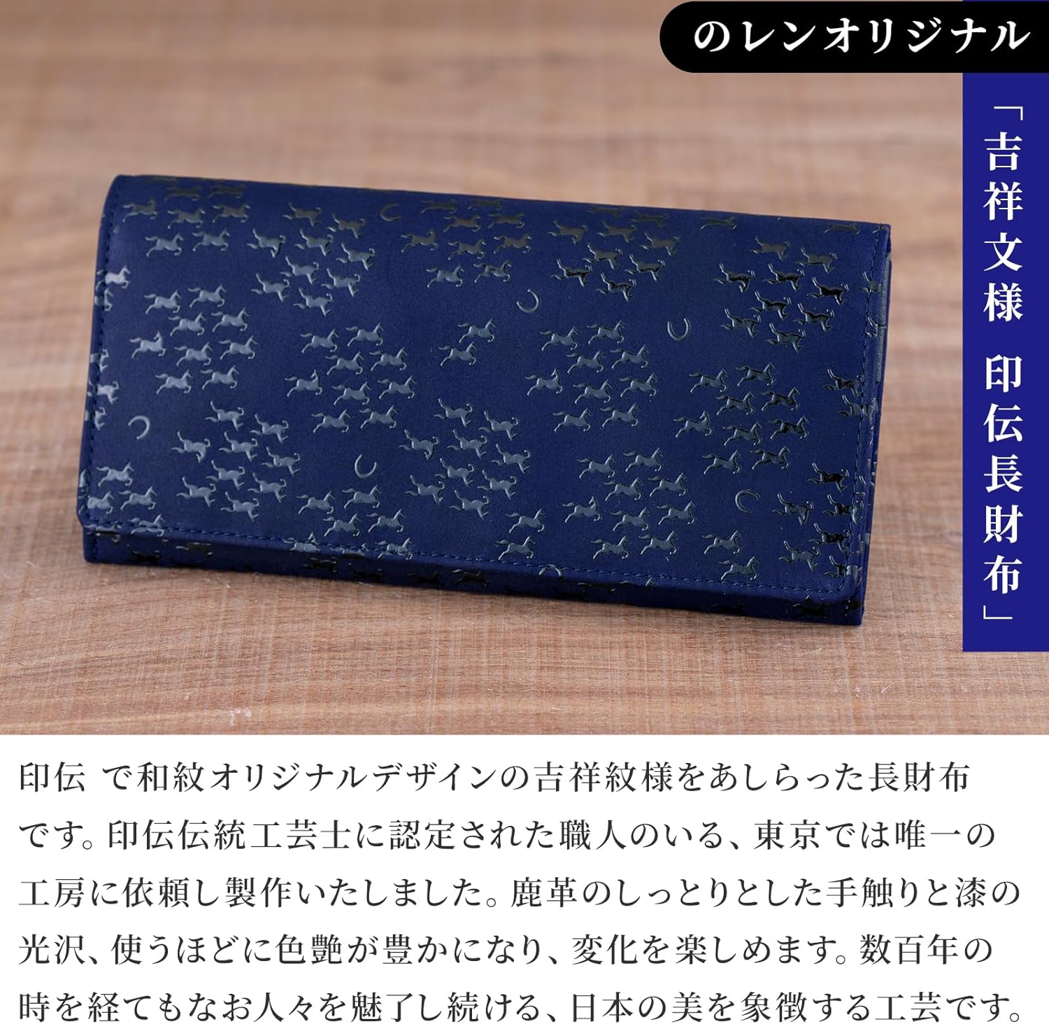 しっとりとした鹿革に、伝統の漆が描き出す文様。使うほどに深みを増し、持ち主とともに育っていく。そんな日本の美を宿した印伝の長財布です。縁起の良い吉祥文様を現代の感性で昇華させた、のレンオリジナルデザイン。和の伝統に、スタイルと実用性を兼ね備えた一本が誕生しました。
