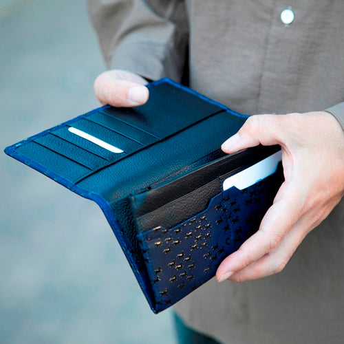吉祥文様にはそれぞれに意味があり、贈り物としても特別な価値を持ちます。ご家族や大切な方への節目の贈り物、海外の方への日本文化を感じるプレゼントにも。和文・英文で文様の意味を記したカード付きで、心を込めたギフトとしても人気です。スタイルに寄り添い、願いを形にする財布です。