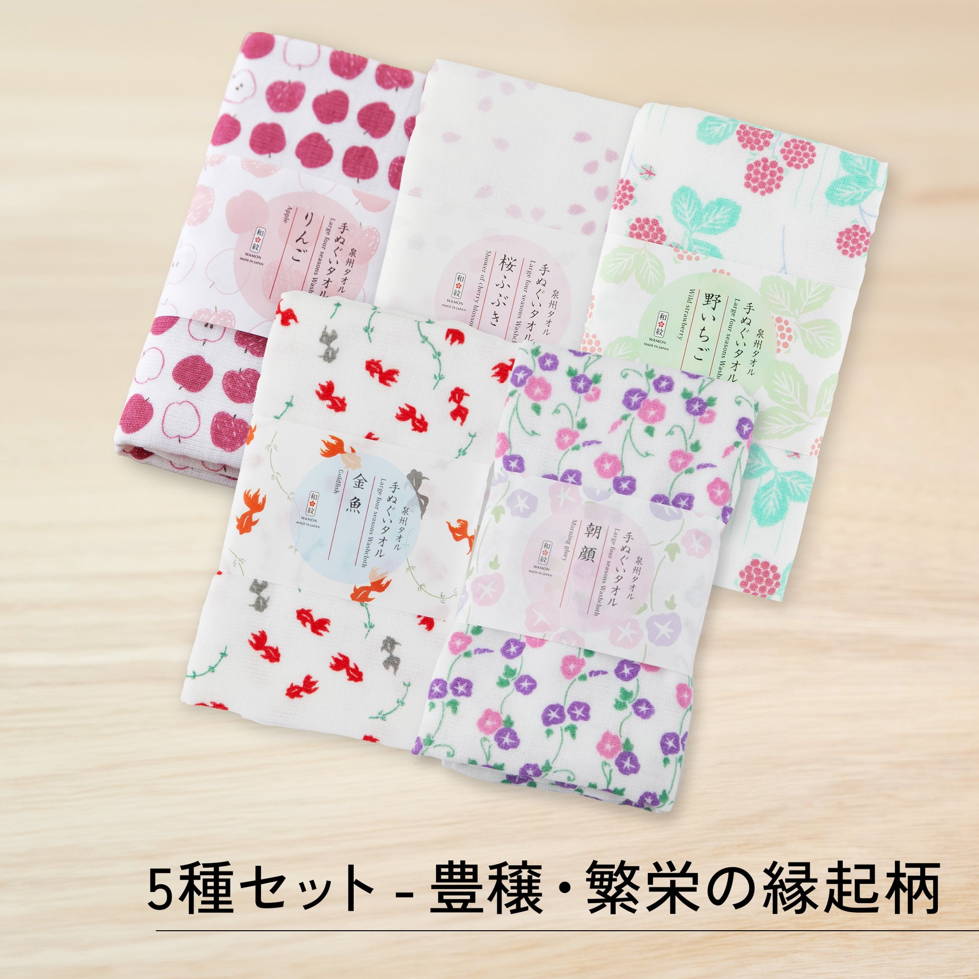 のレン 泉州タオル フェイスタオル 5柄セット
