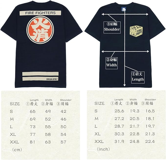 サイズ:【S】身丈:65cm/身幅:48cm/肩幅:40cm・【M】身丈:68cm/身幅:51cm/肩幅:43cm/・【L】身丈:71cm/身幅:54cm/肩幅:46cm・【XL】身丈:74cm/身幅:57cm/肩幅:49cm・【XXL】身丈:78cm/身幅巾:62cm/肩幅:53cm