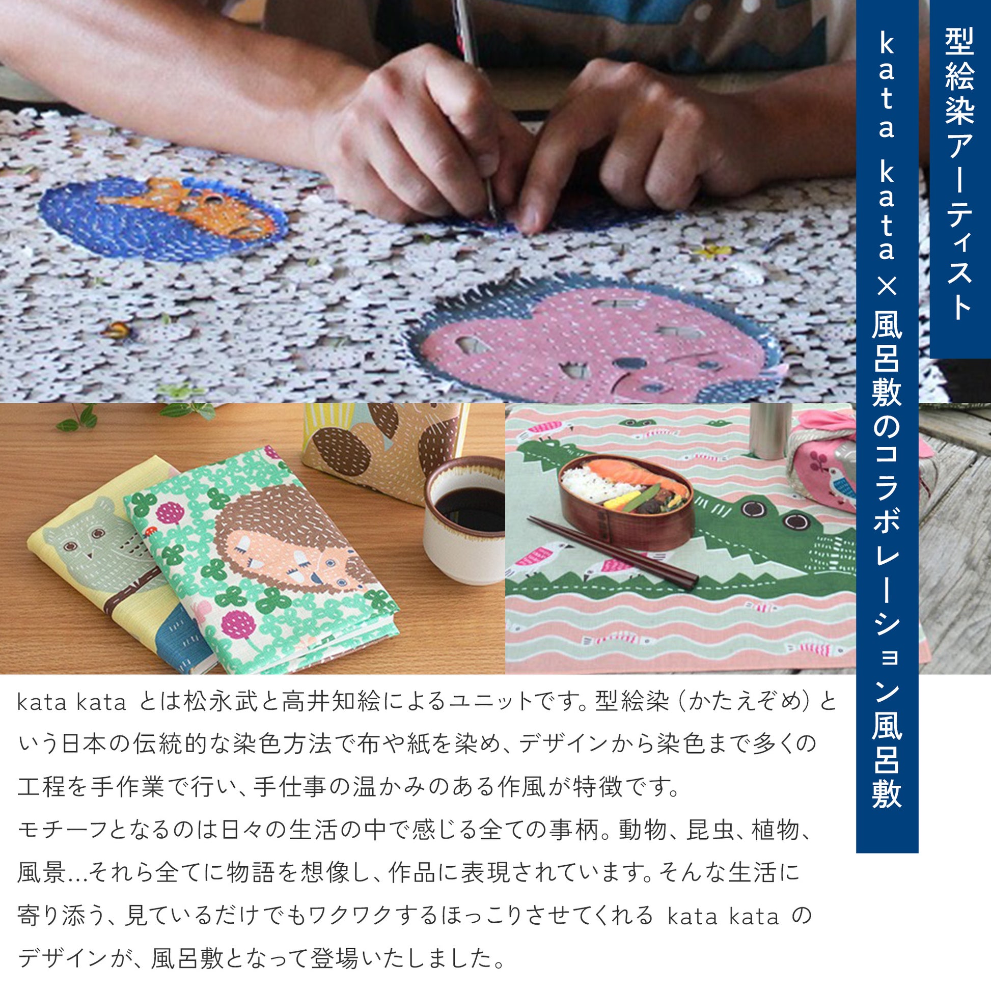 生活に寄り添う、見ているだけでもワクワクし、ほっこりさせてくれる kata kata のデザインが、風呂敷となって登場いたしました。
