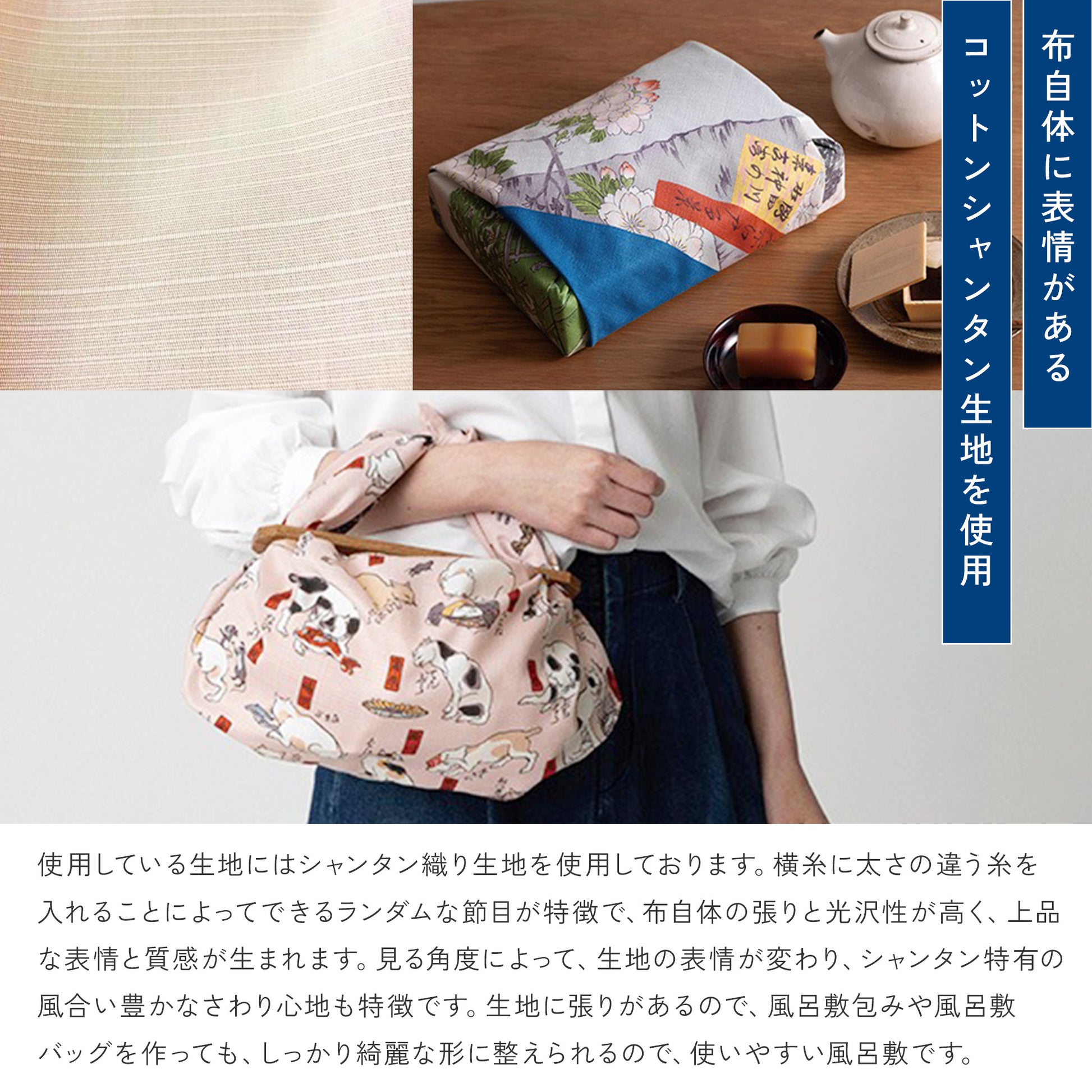 さっと広げて荷物を入れたい時の小さな風呂敷サブバッグにもおすすめのほか、バッグの上にかぶせて目隠しにしたり、旅行時の荷物を整理するパッキン布にしたり、テーブルセンターなどの敷物としても使い大きさの風呂敷です。