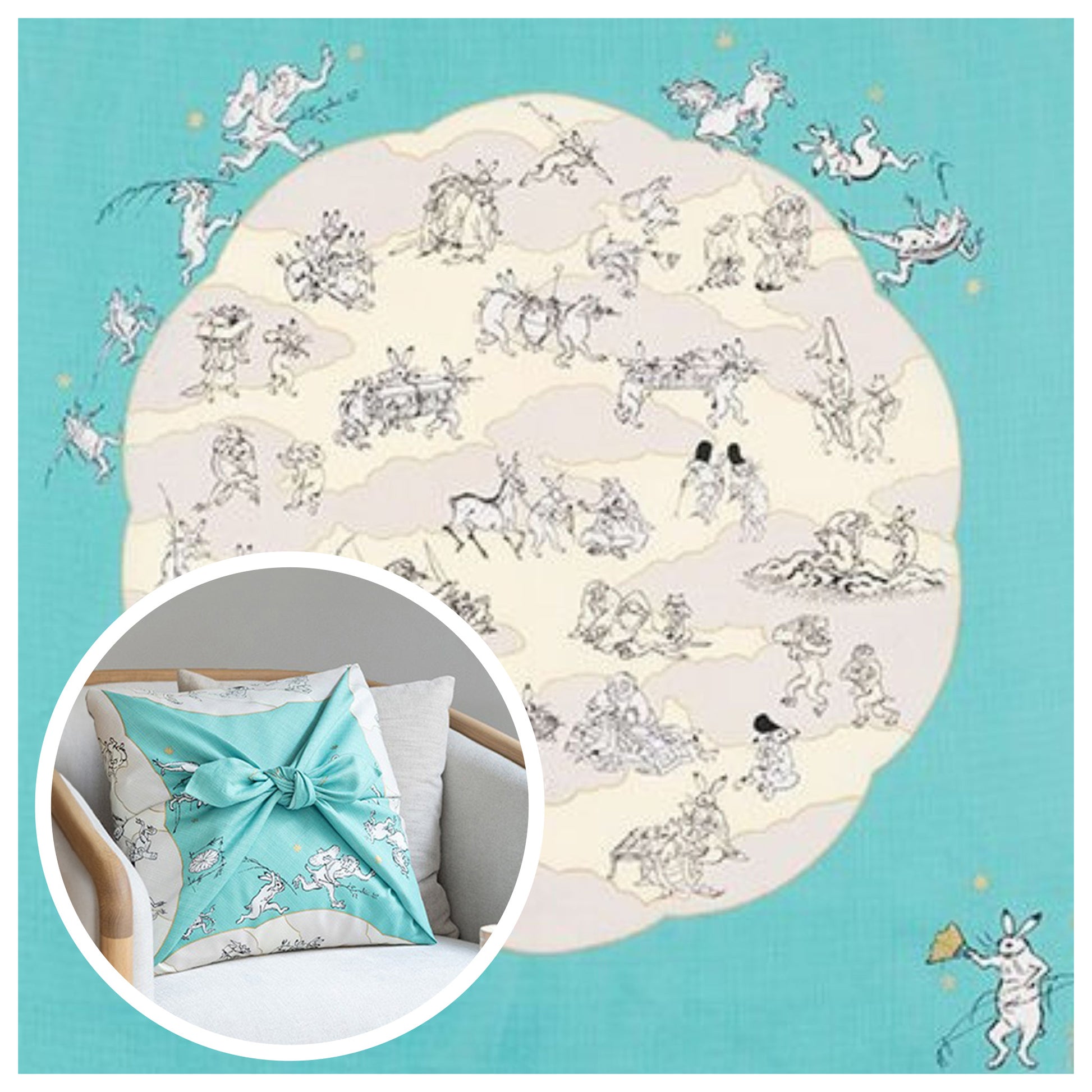 動物たちを擬人化してユーモラスに描いた絵巻物の世界観を一枚の風呂敷に再現いたしました。